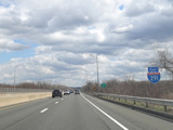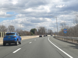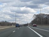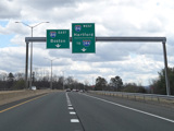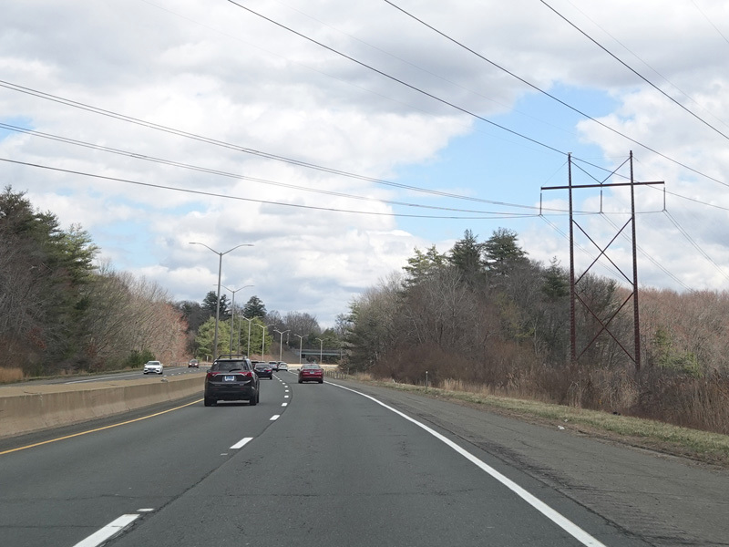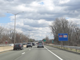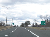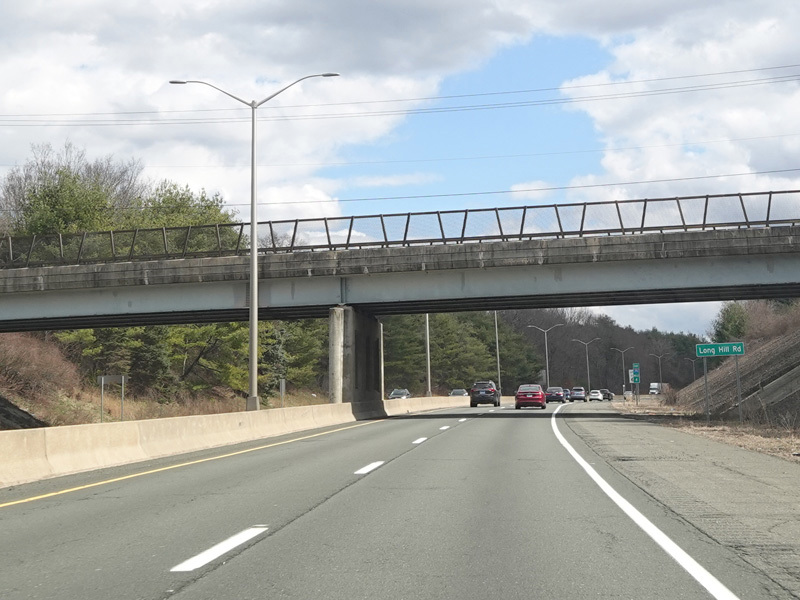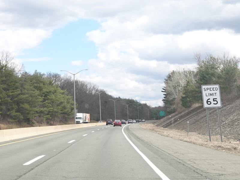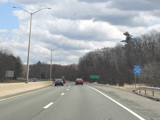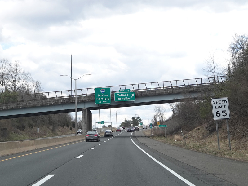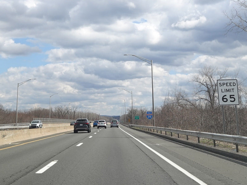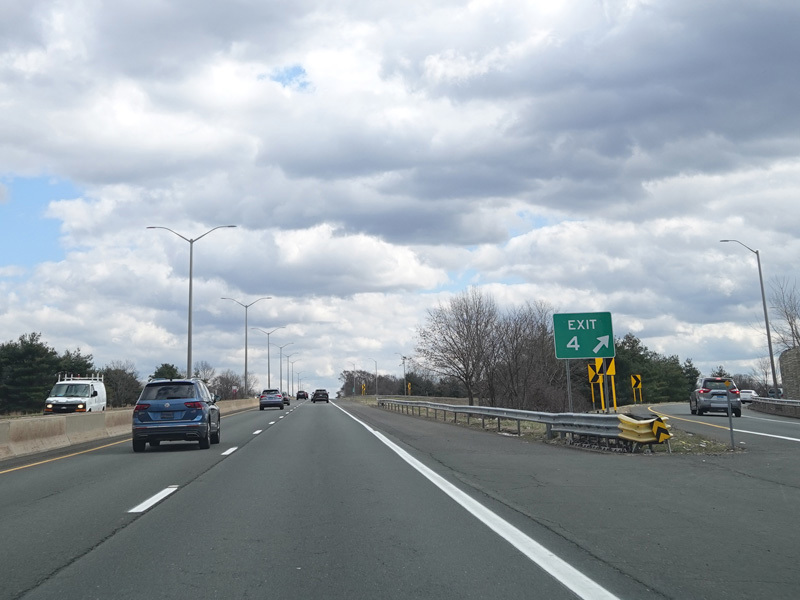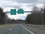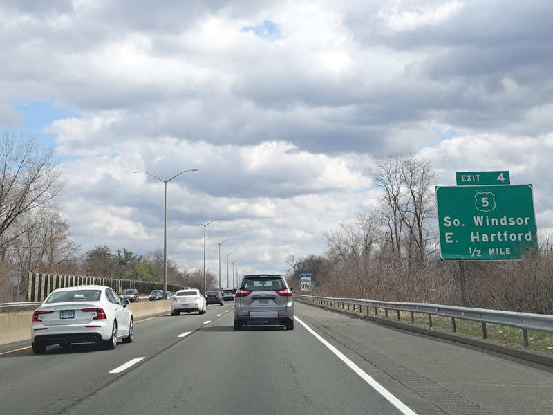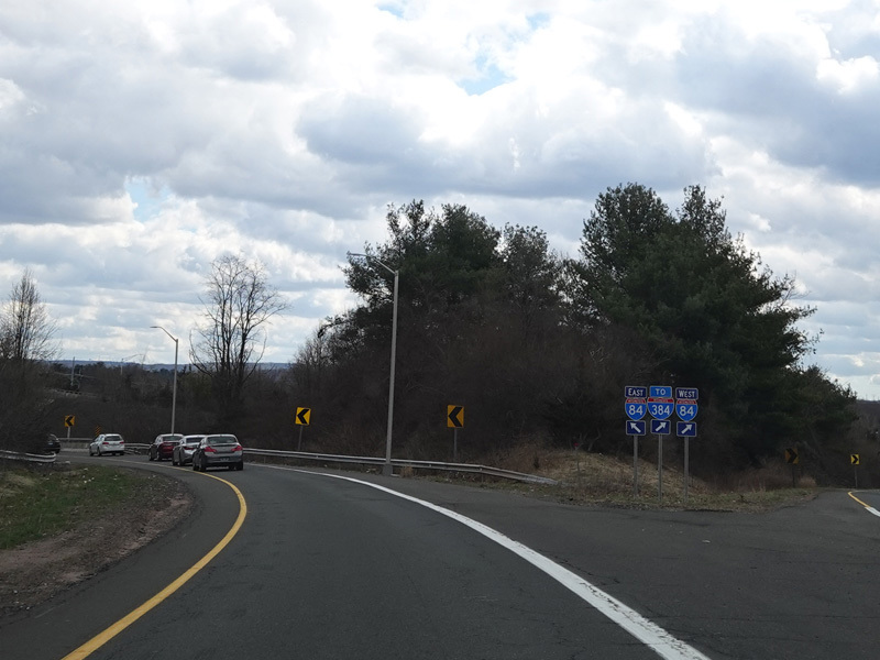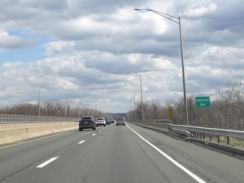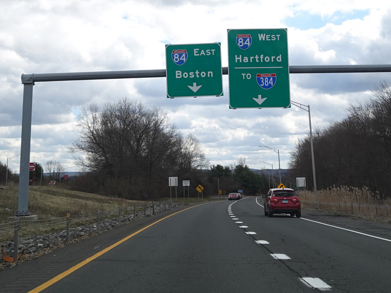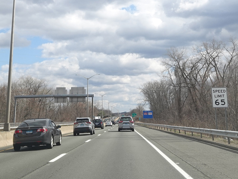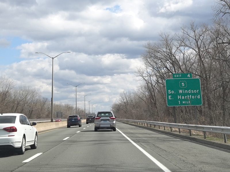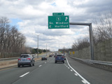 I-291 ends here at the Wilbur Cross Highway (I-84). Use the left lane to go east or the right lane to go west.