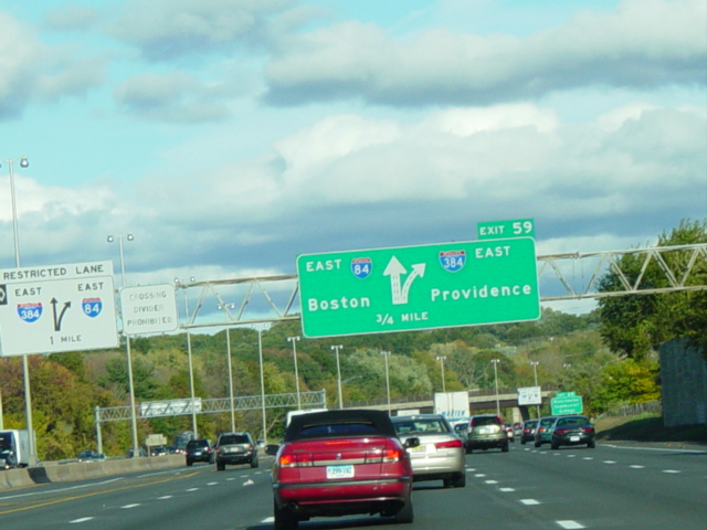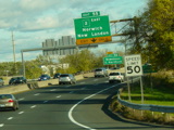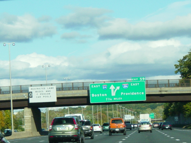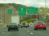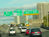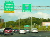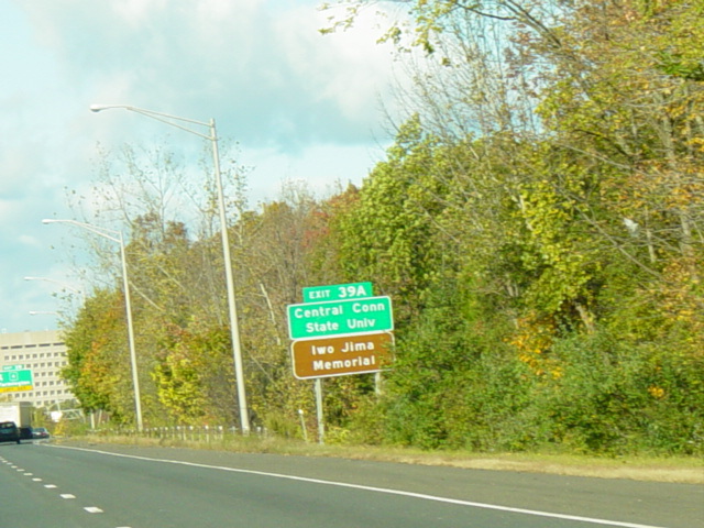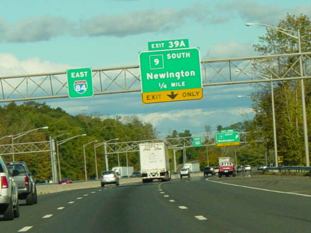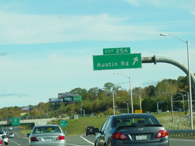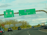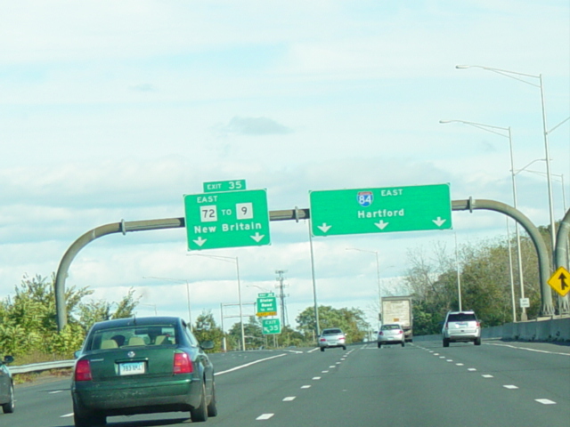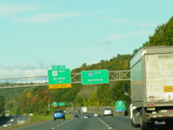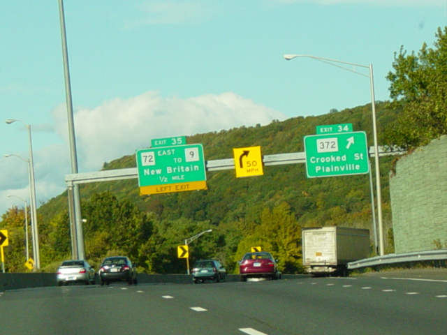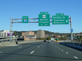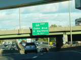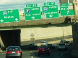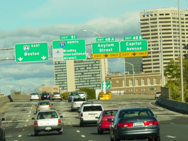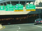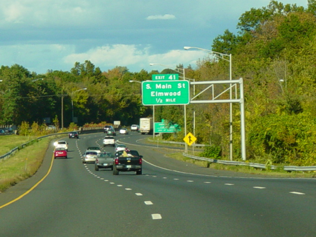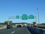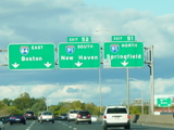 These pictures show the Yankee Expressway in the same area in Waterbury as it appeared after the construction work was completed. In the years since, another construction project has combined exits 21-22 into a single exit 22 that is signed only for Downtown Waterbury.
