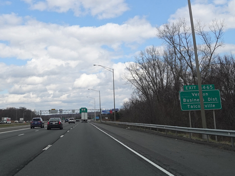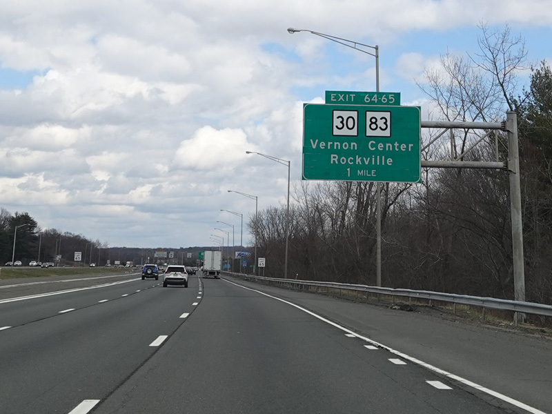 Exits 64-65 are for Hartford Turnpike (CT 30/CT 83) and Talcottville Road (CT 83).
