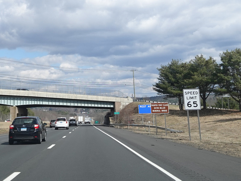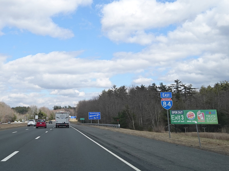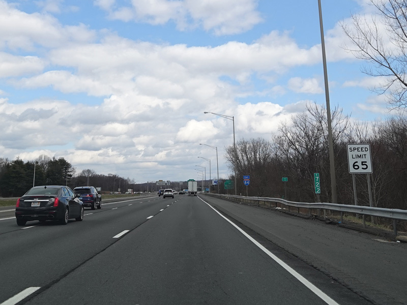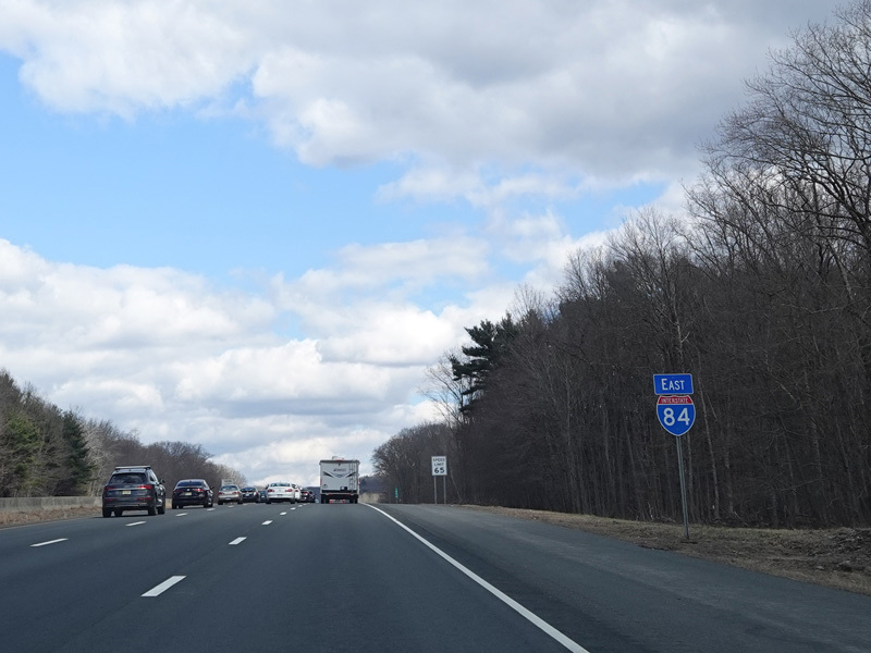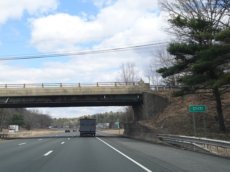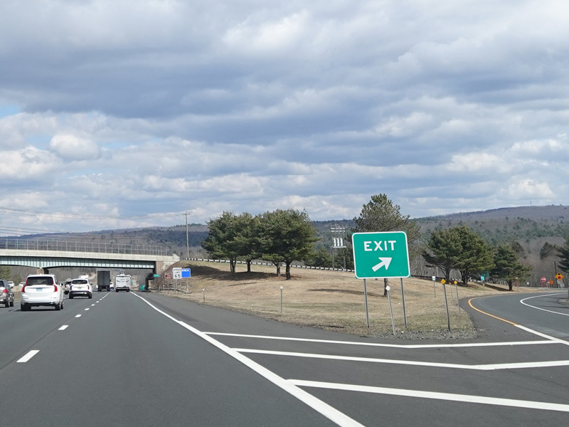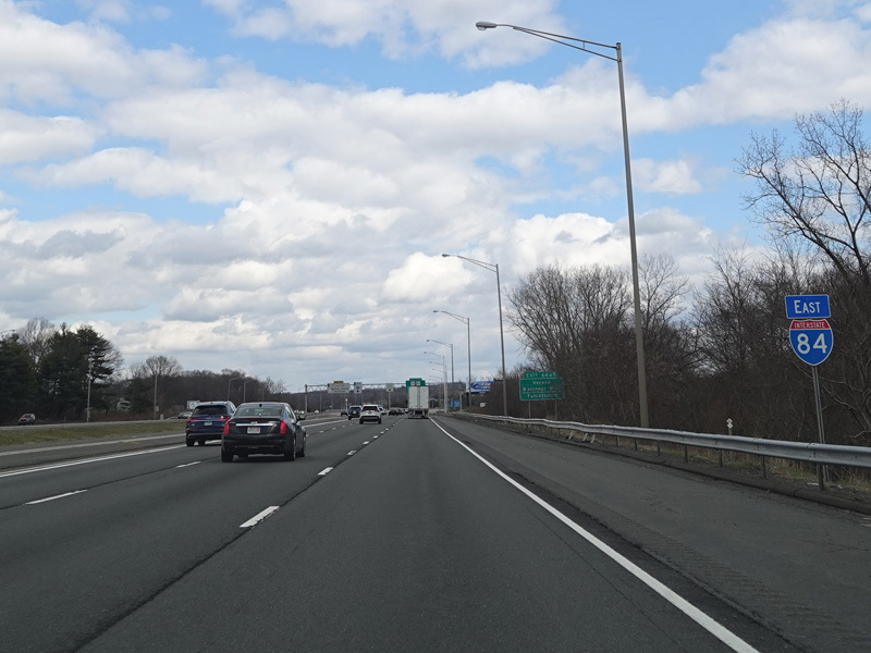Exit 74 is for Buckley Highway (CT 171). It is the last exit in Connecticut. I-84 continues straight ahead into Massachusetts.