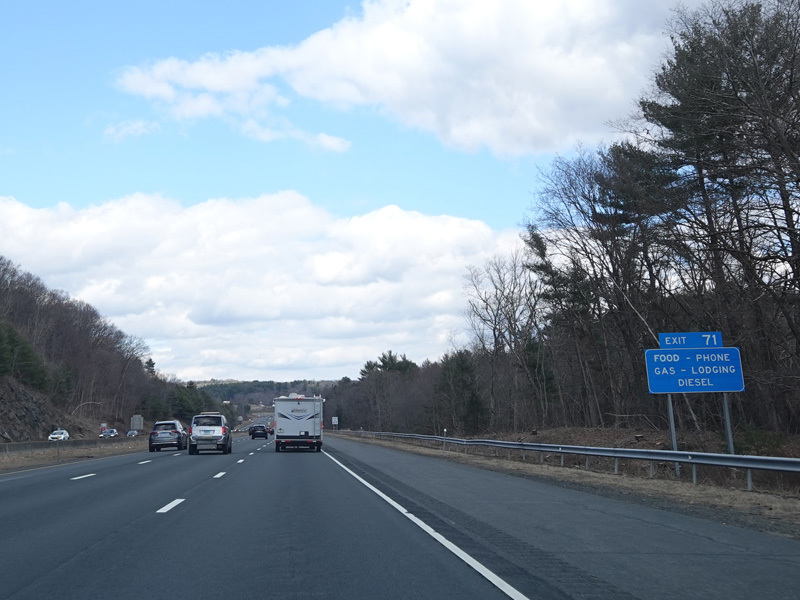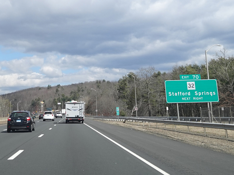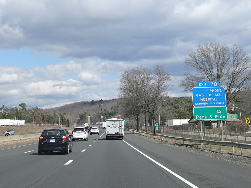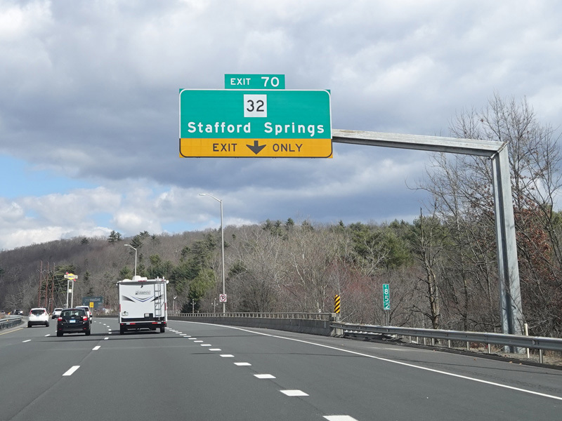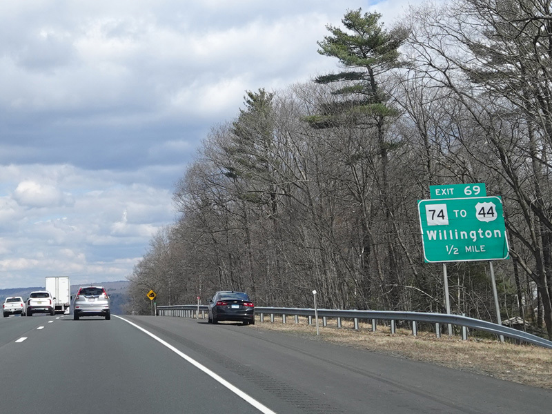 Exit 69 is for Tolland Stage Road (CT 74) and US 44.