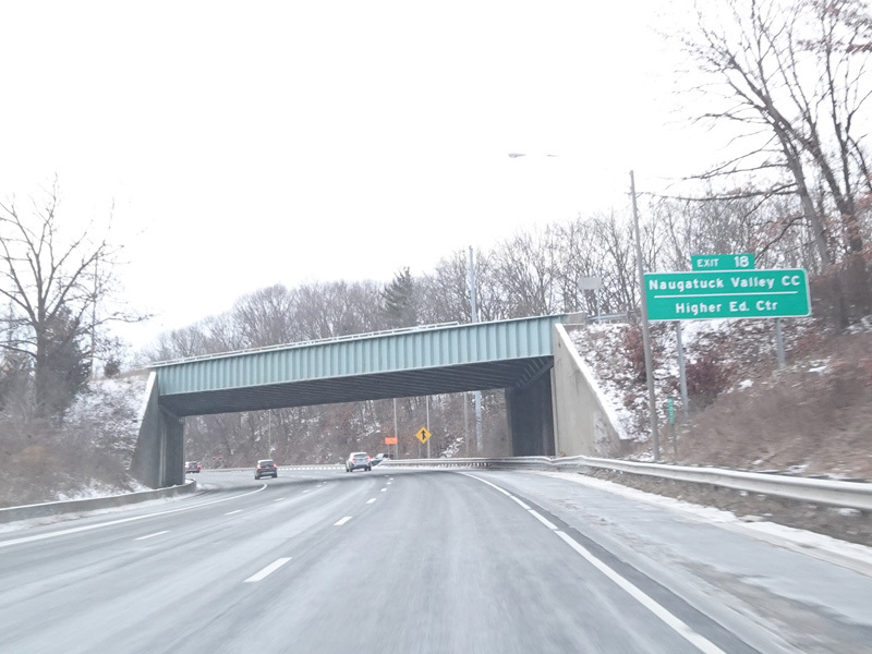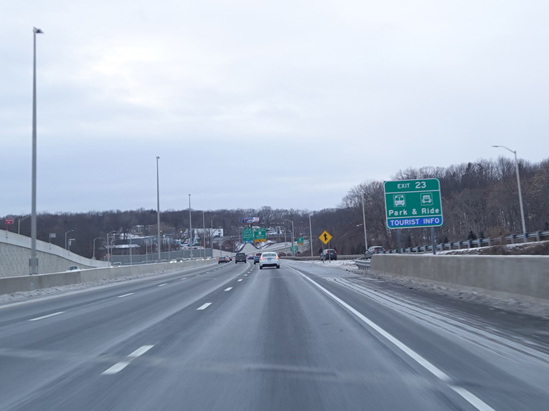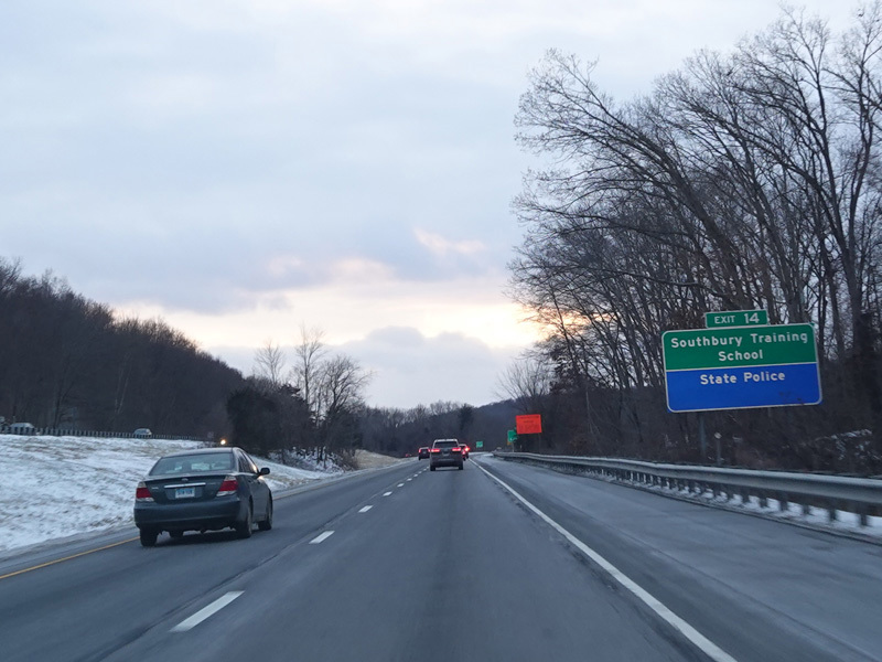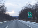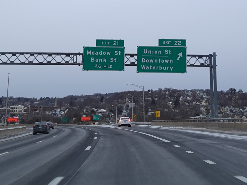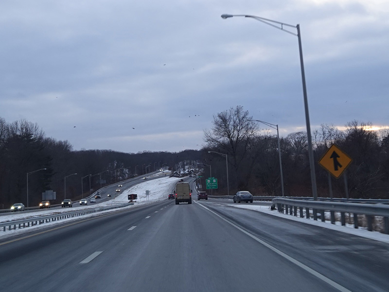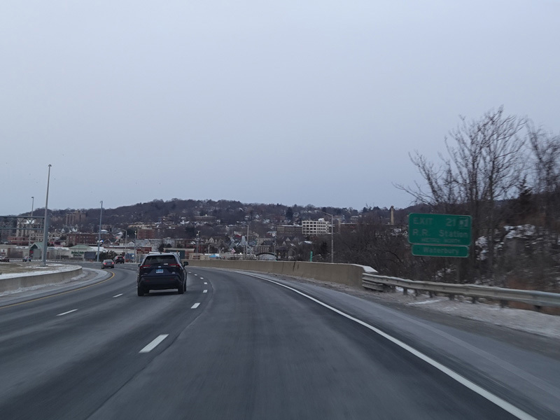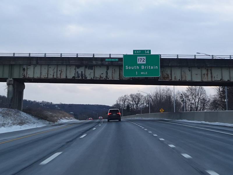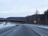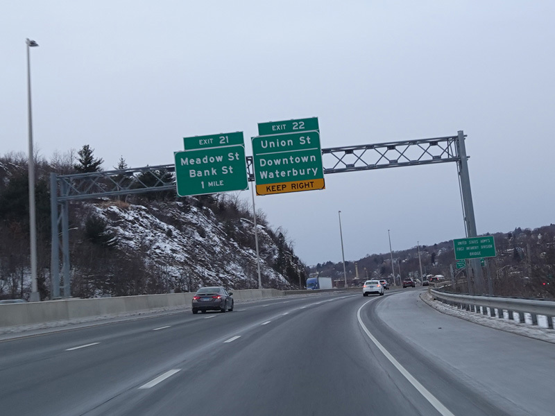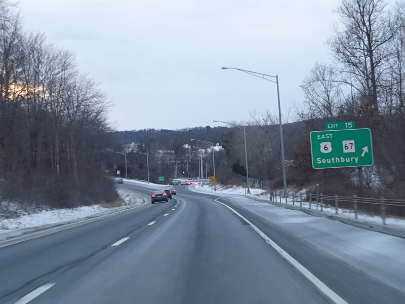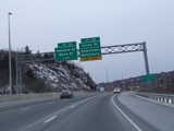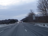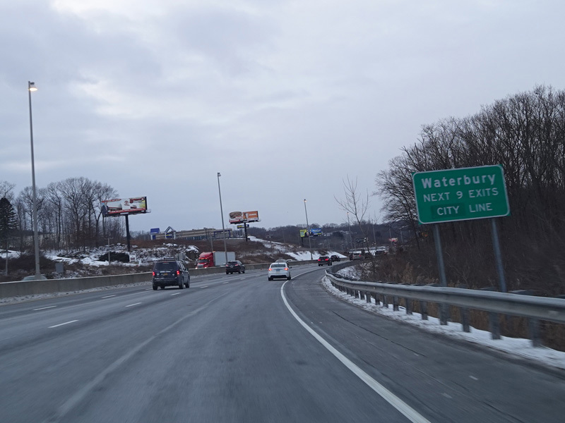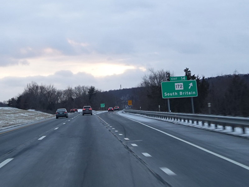 Heading out of the Waterbury area, the distance between exits gets longer. There is a slow vehicle lane as the Yankee Expressway goes uphill.