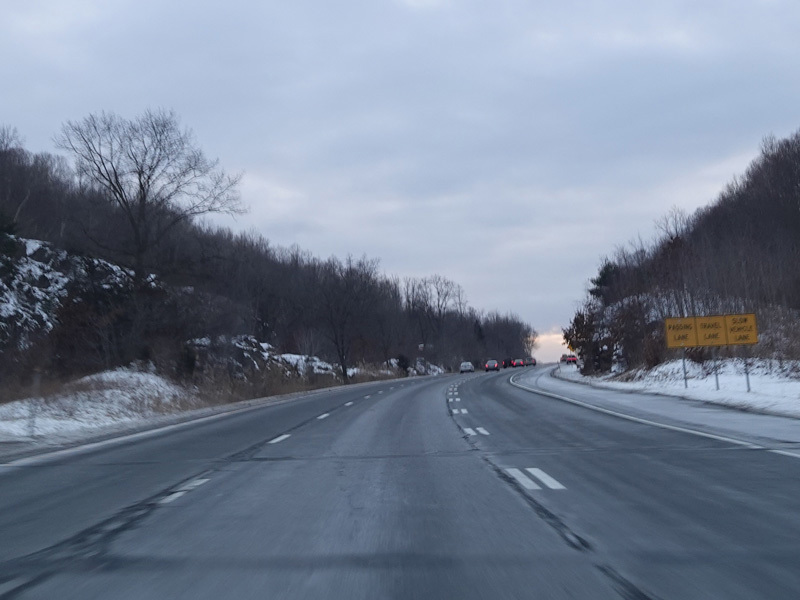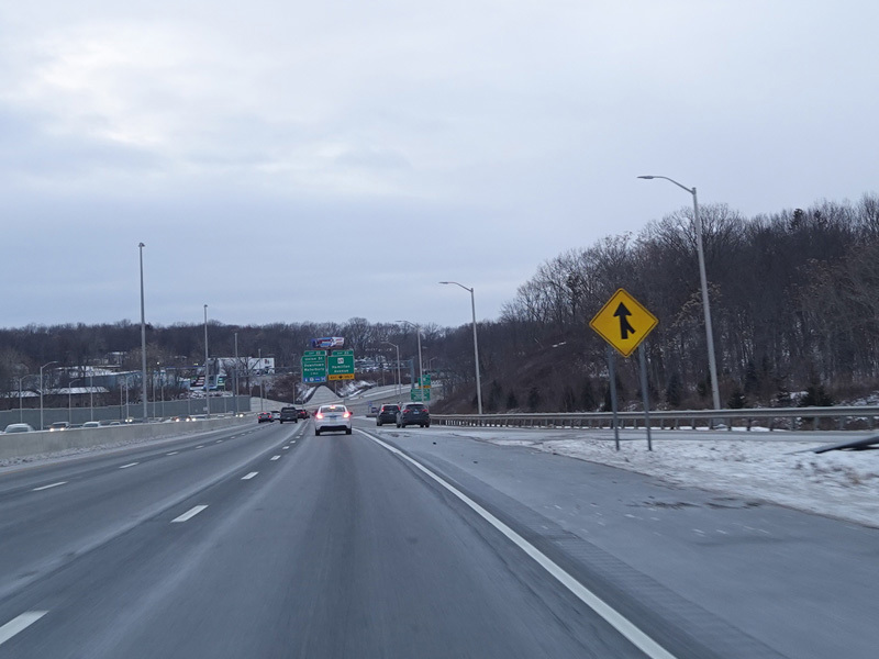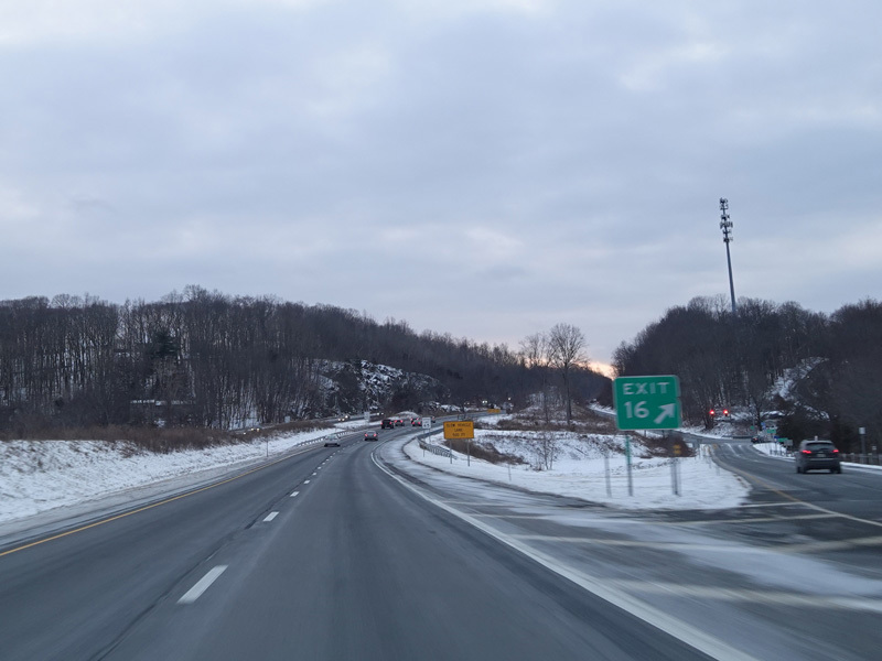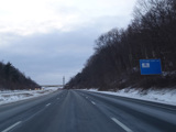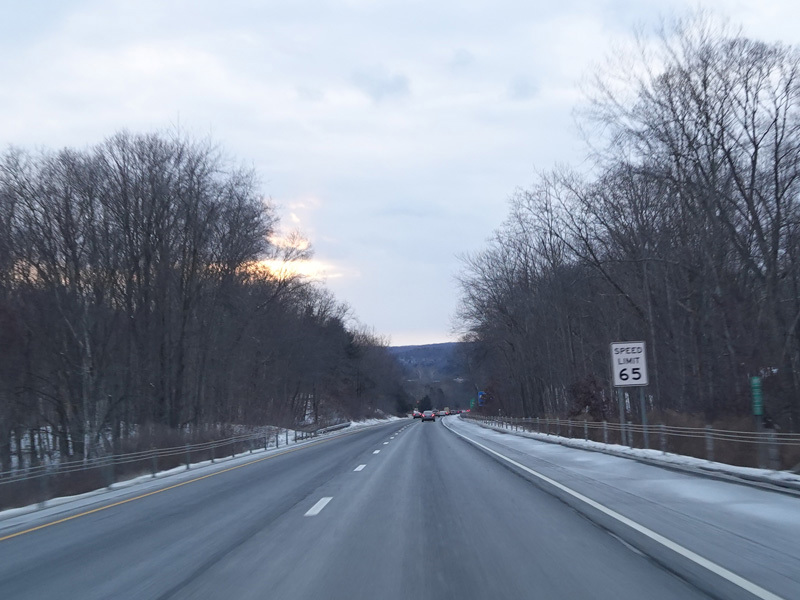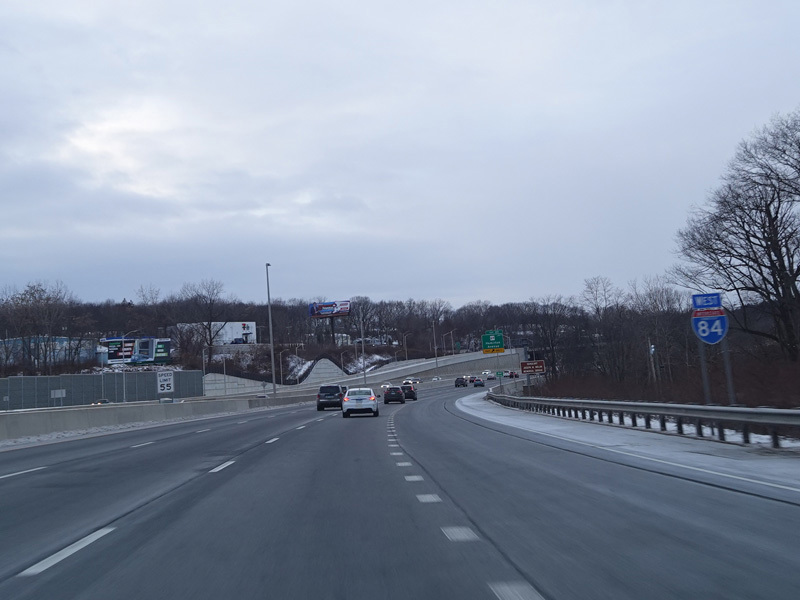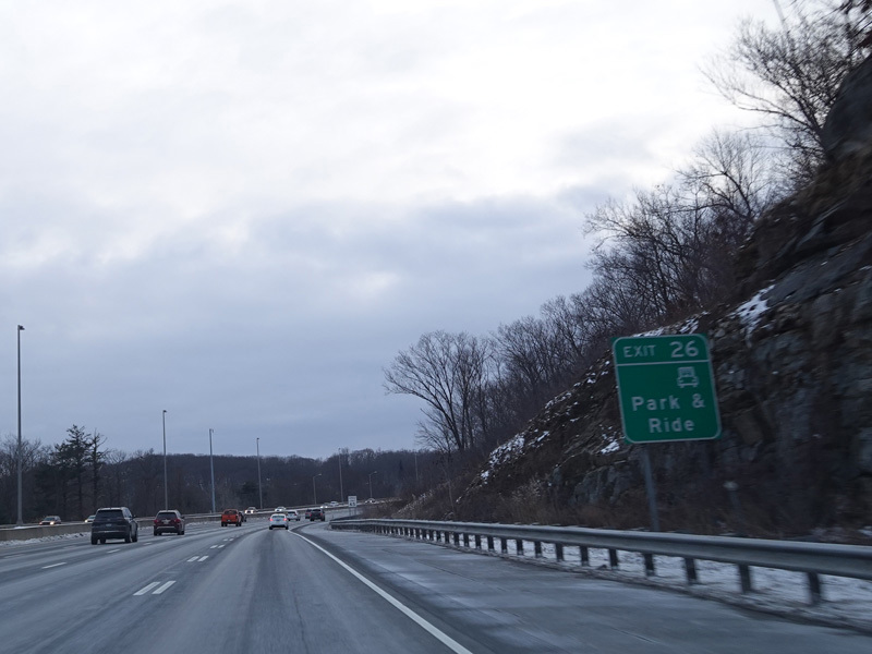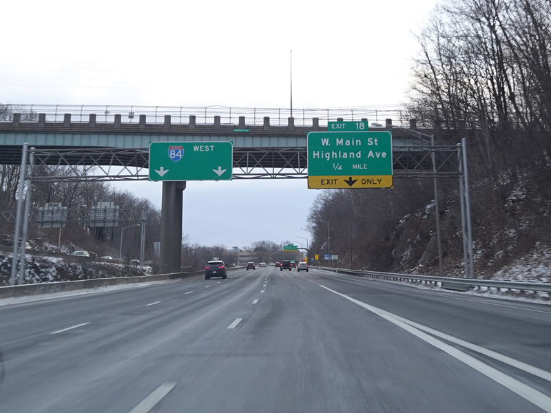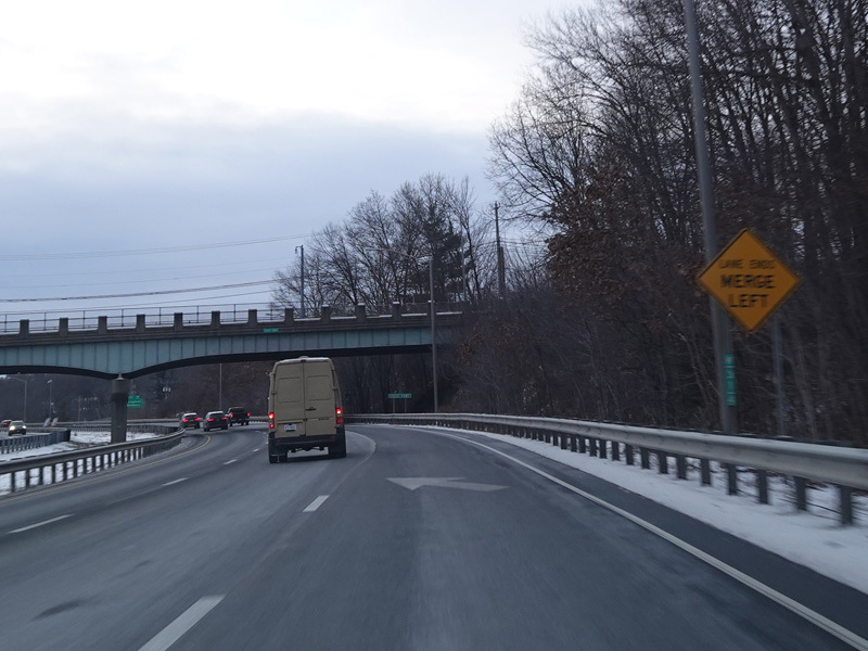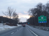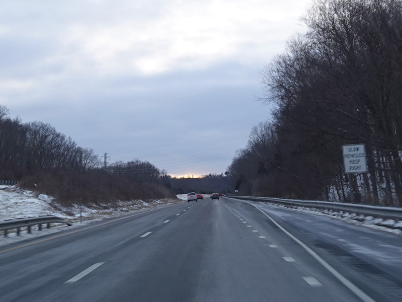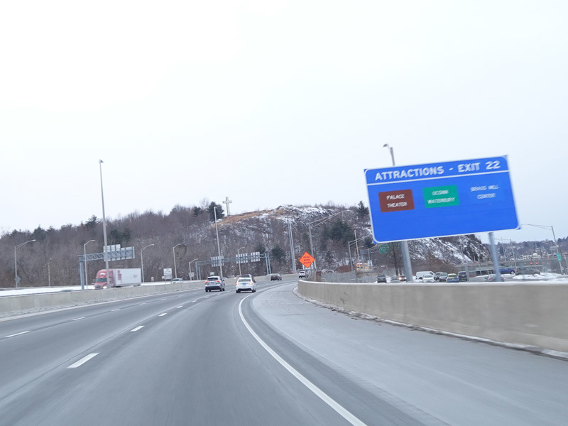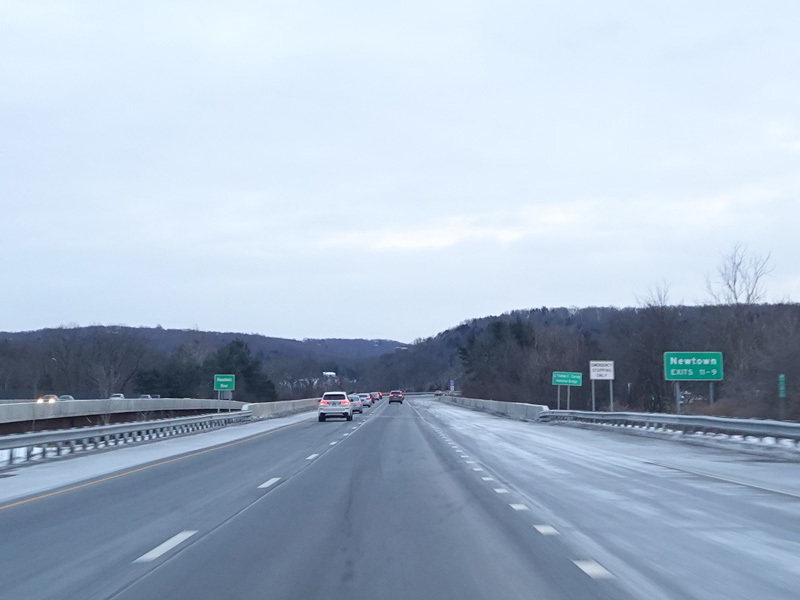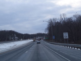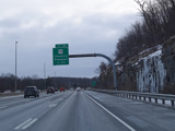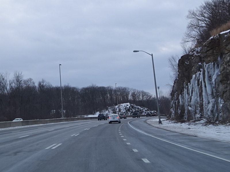Heading out of the Waterbury area, the distance between exits gets longer. There is a slow vehicle lane as the Yankee Expressway goes uphill.