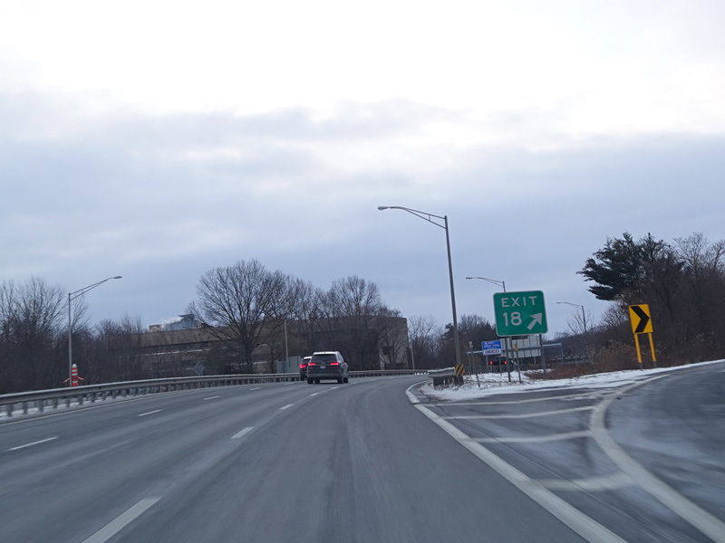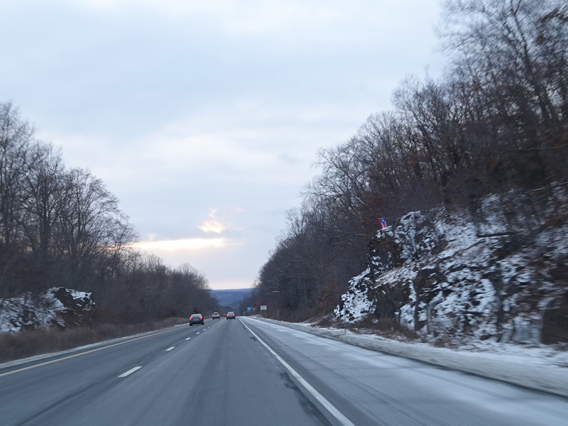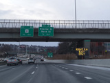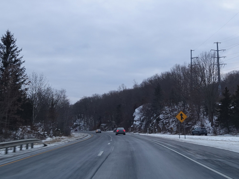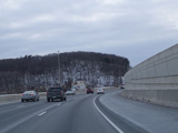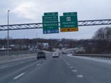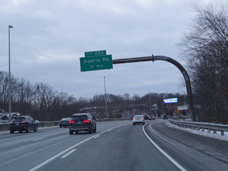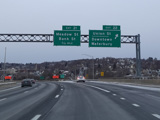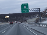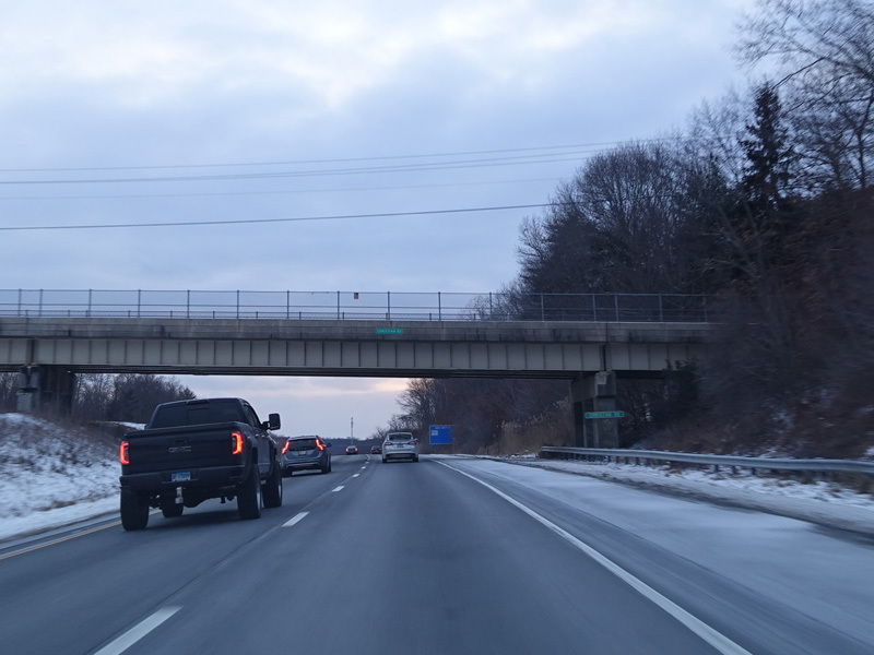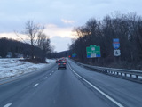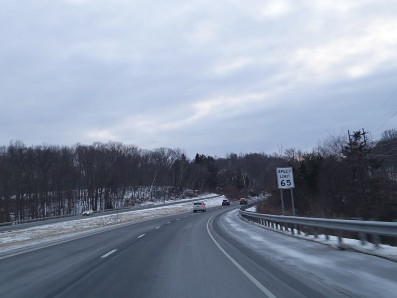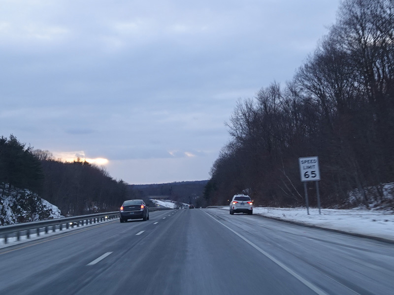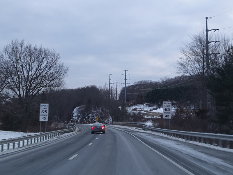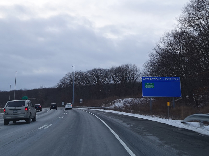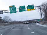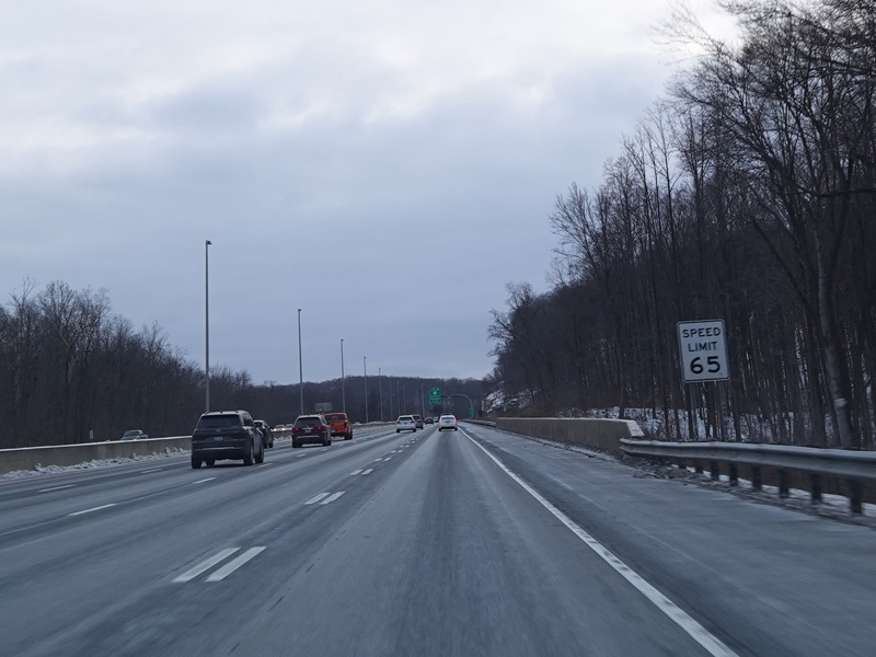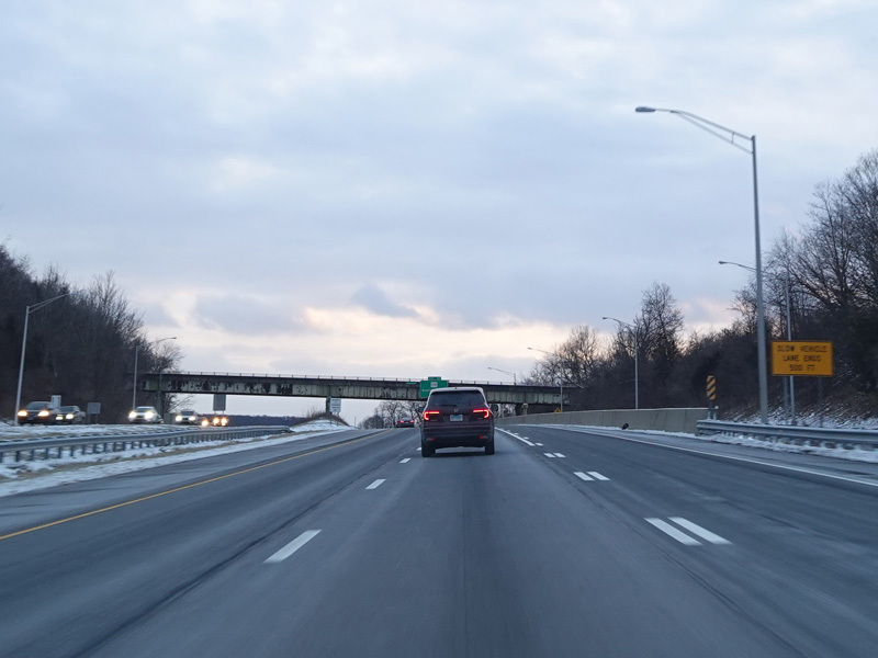 Heading out of the Waterbury area, the distance between exits gets longer. There is a slow vehicle lane as the Yankee Expressway goes uphill.