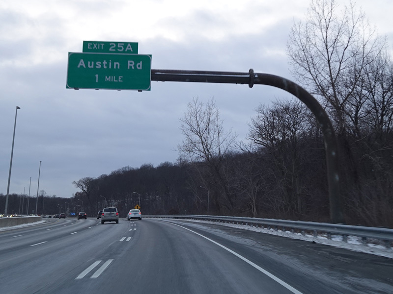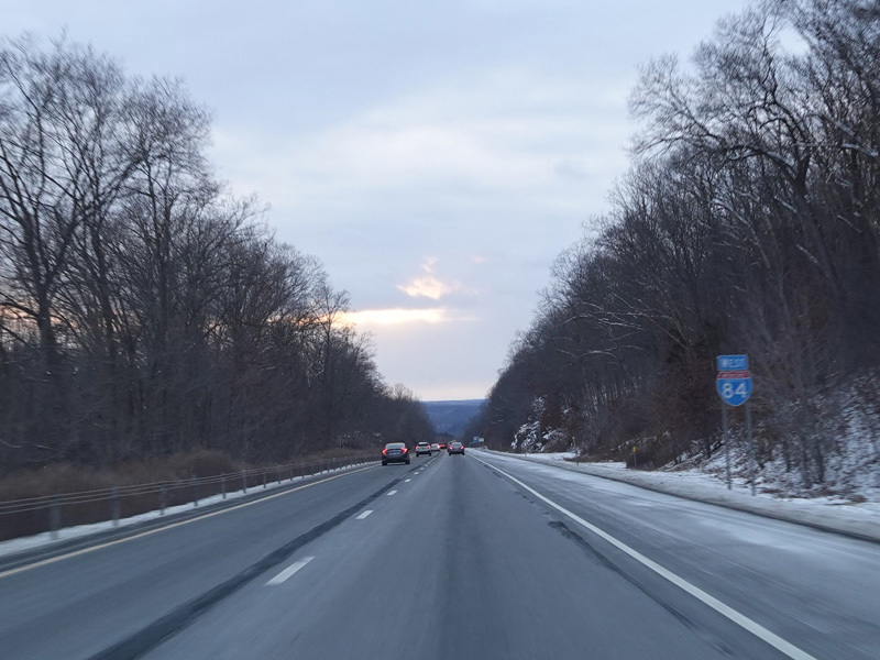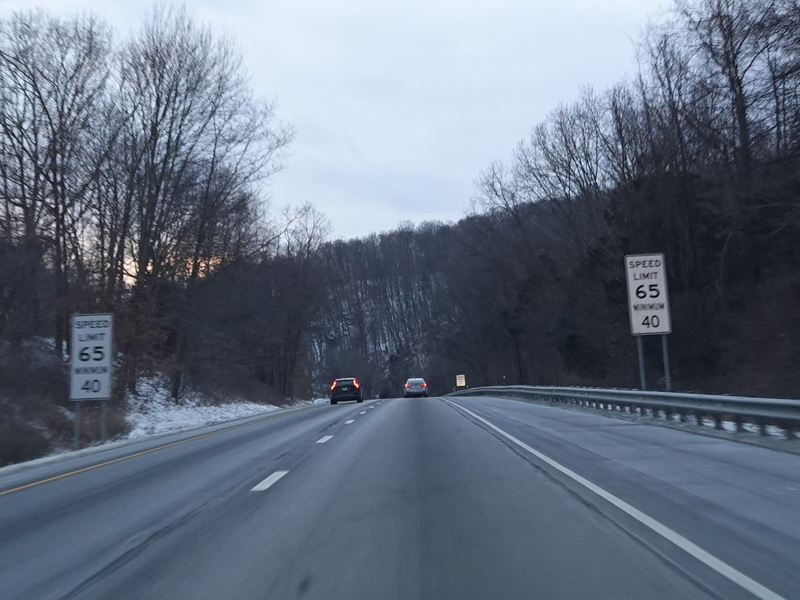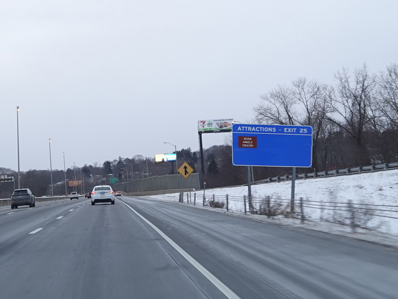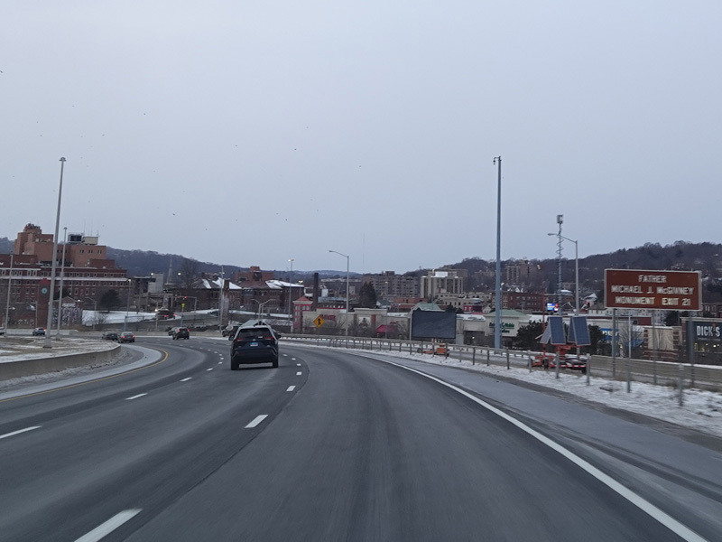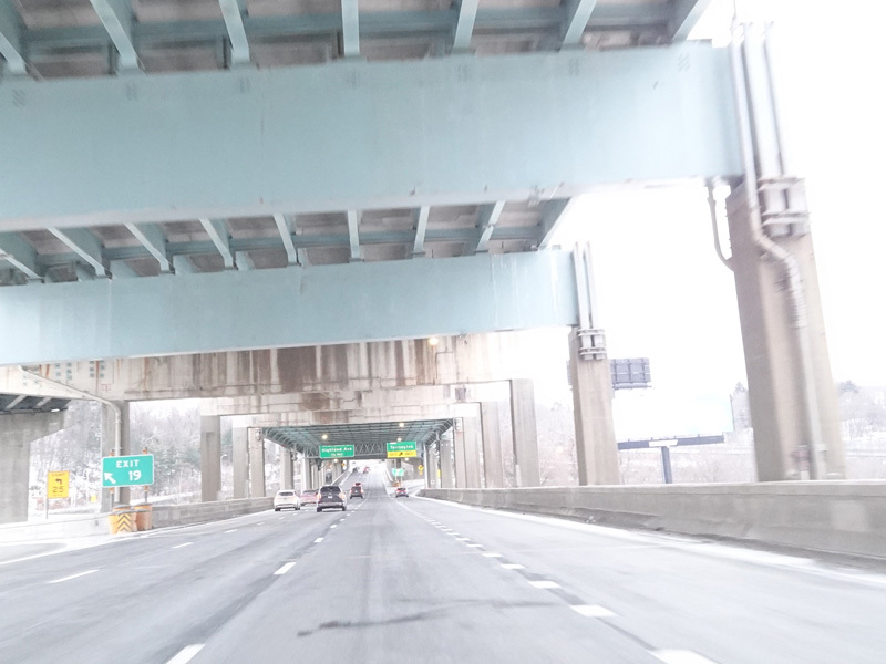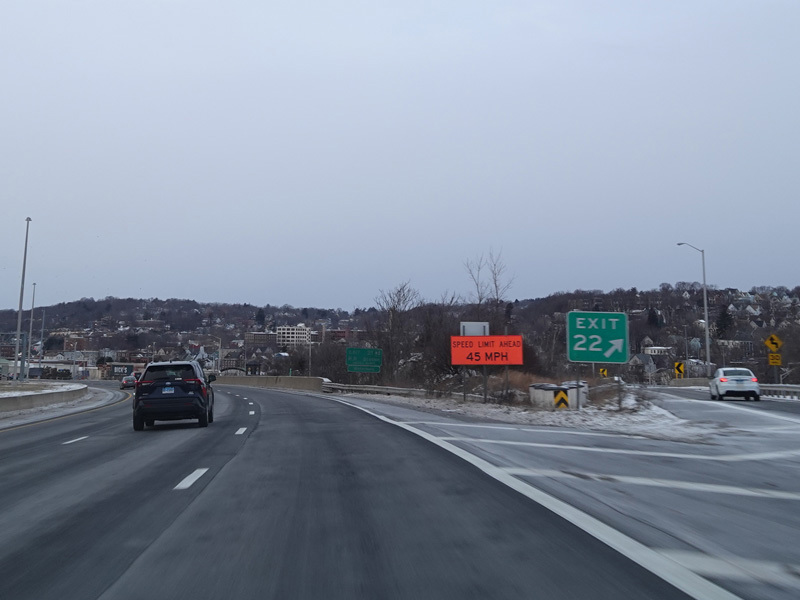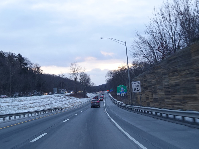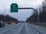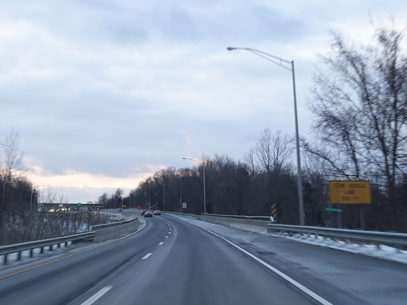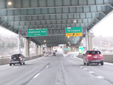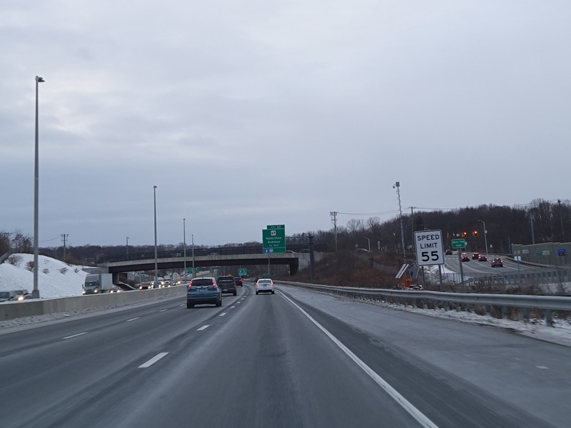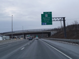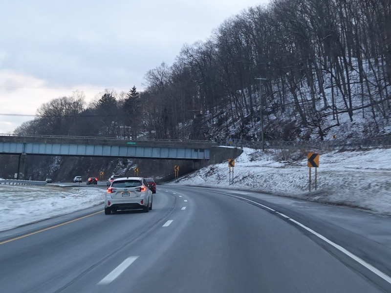 Heading out of the Waterbury area, the distance between exits gets longer. There is a slow vehicle lane as the Yankee Expressway goes uphill.