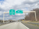 Exits 35A-B share a ramp when travelling north. Bear right for exit 35A for I-291 east. Continue straight ahead for exit 34B for Putnam Highway (CT 218).
