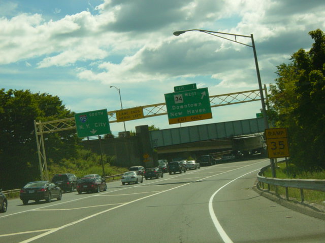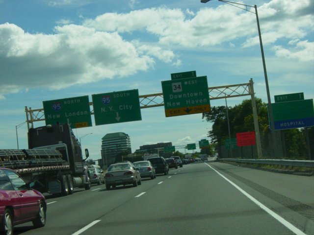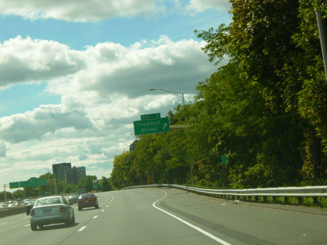 These pictures show I-91 southbound at exits 4-1 as it appeared prior to the reconstruction of the interchange at the southern terminus. All signs shown have been replaced.
