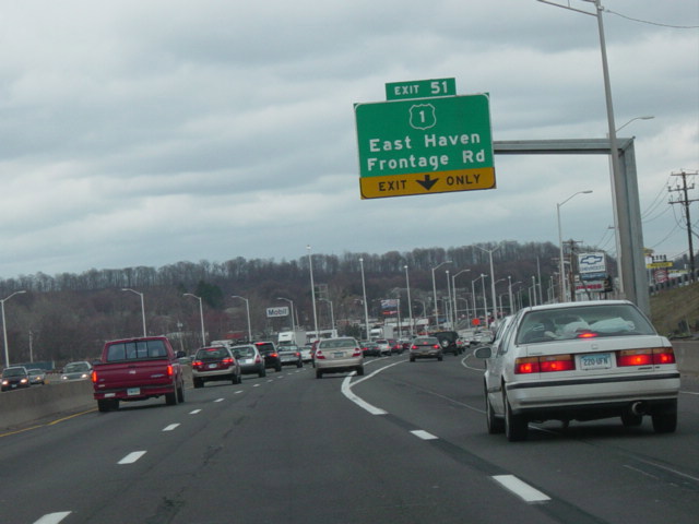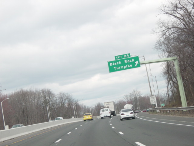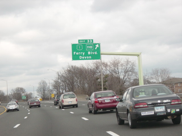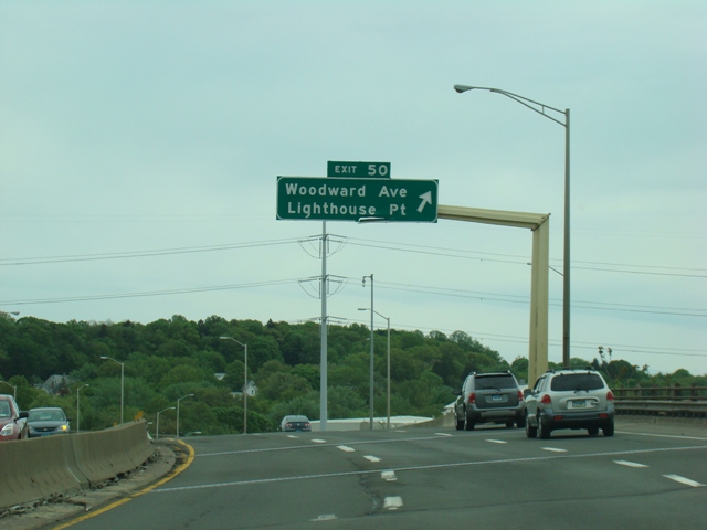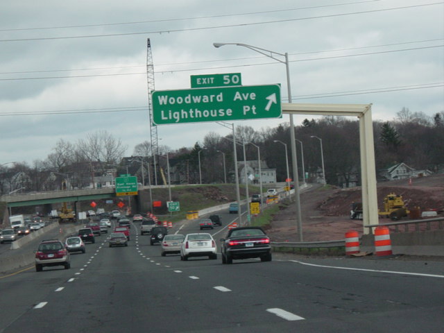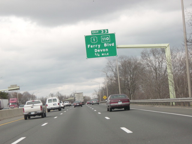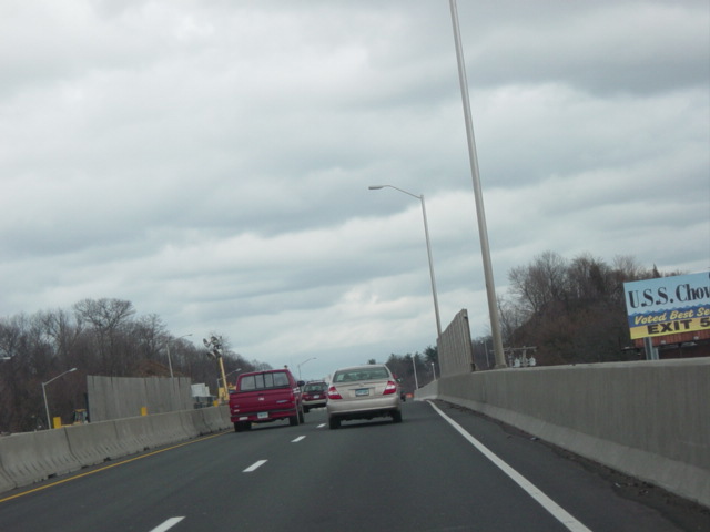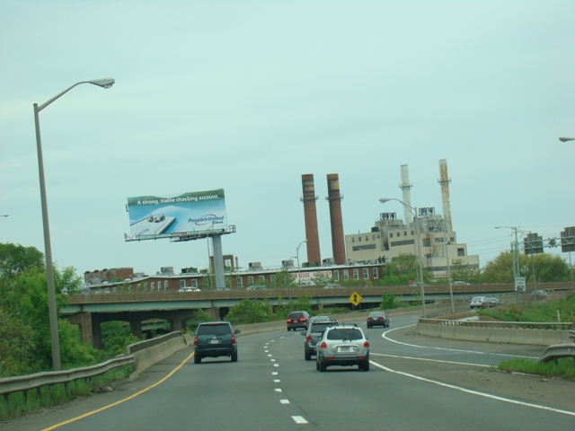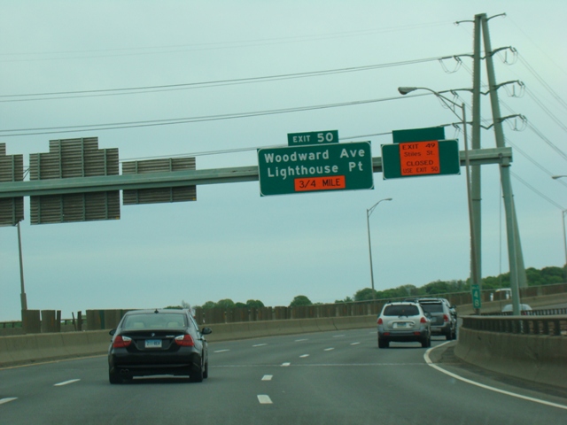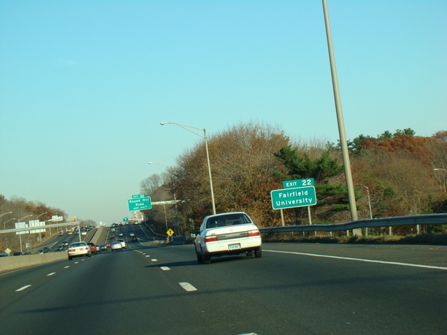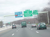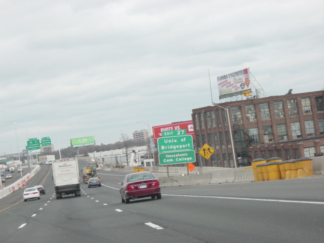 These pictures show the Connecticut Turnpike in Bridgeport when the reconstruction of this section was nearing completion. Most of the signs shown here have been modified or replaced.
