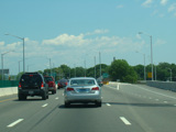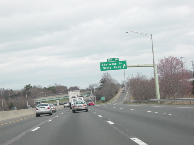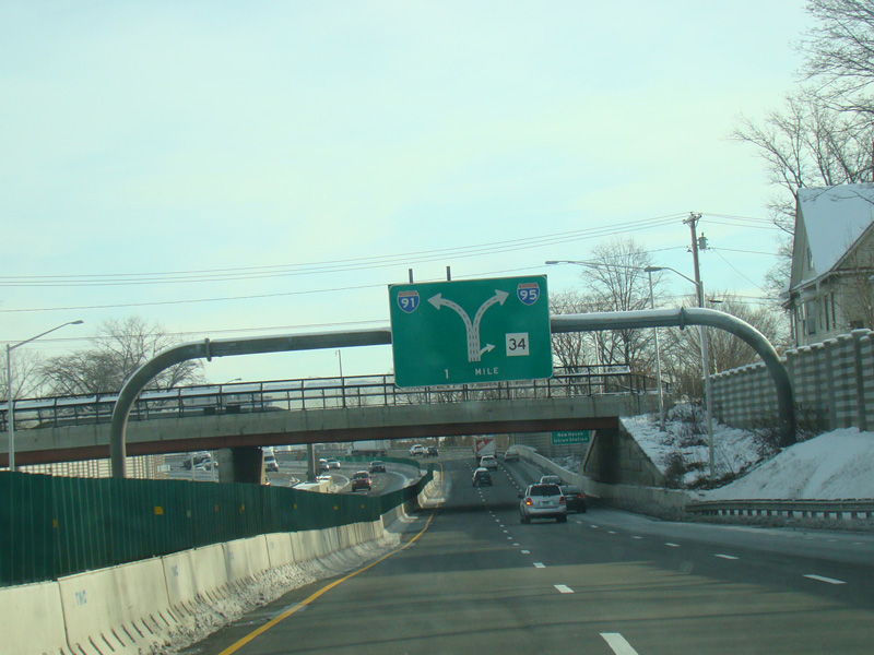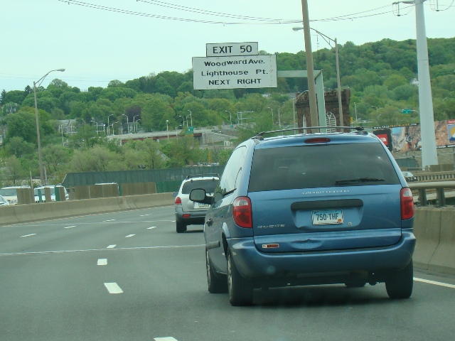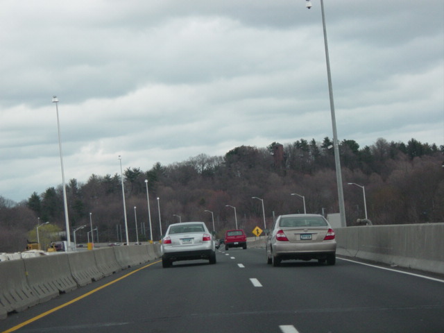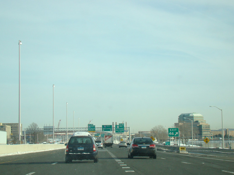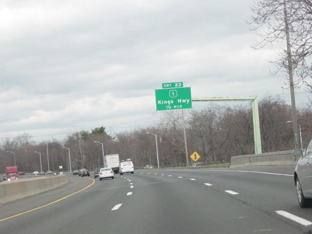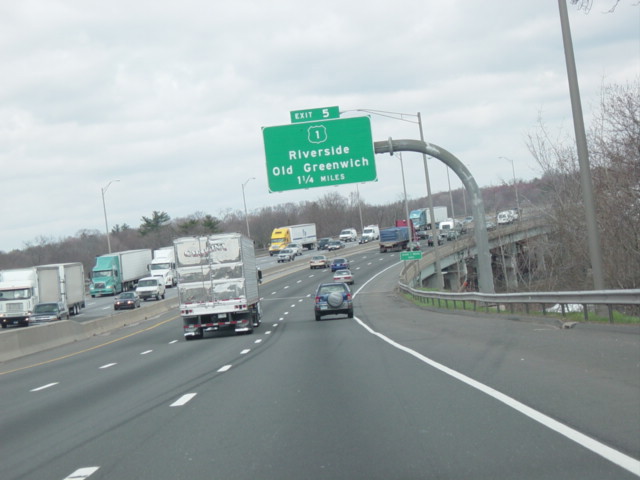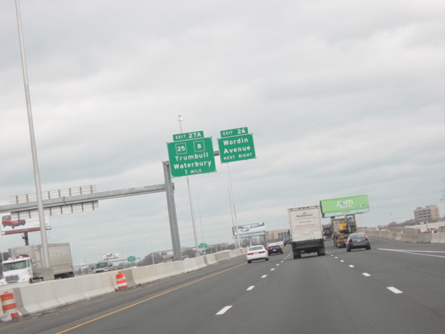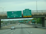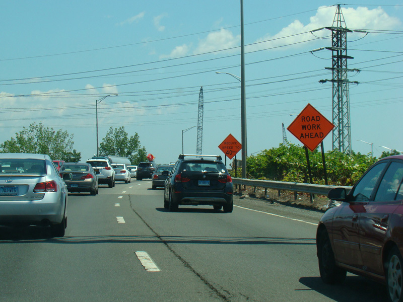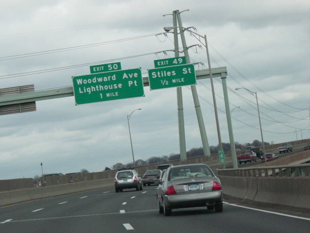 These pictures show the Connecticut Turnpike in Bridgeport when the reconstruction of this section was nearing completion. Most of the signs shown here have been modified or replaced.