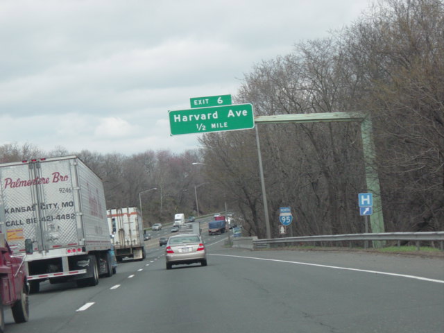 This picture shows the same sign before it was modified to indicate that I-395 is a left exit.