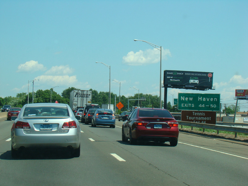 These old button-copy signs were located on the Connecticut Turnpike northbound at exits 30-41. All of them were replaced by 2016.