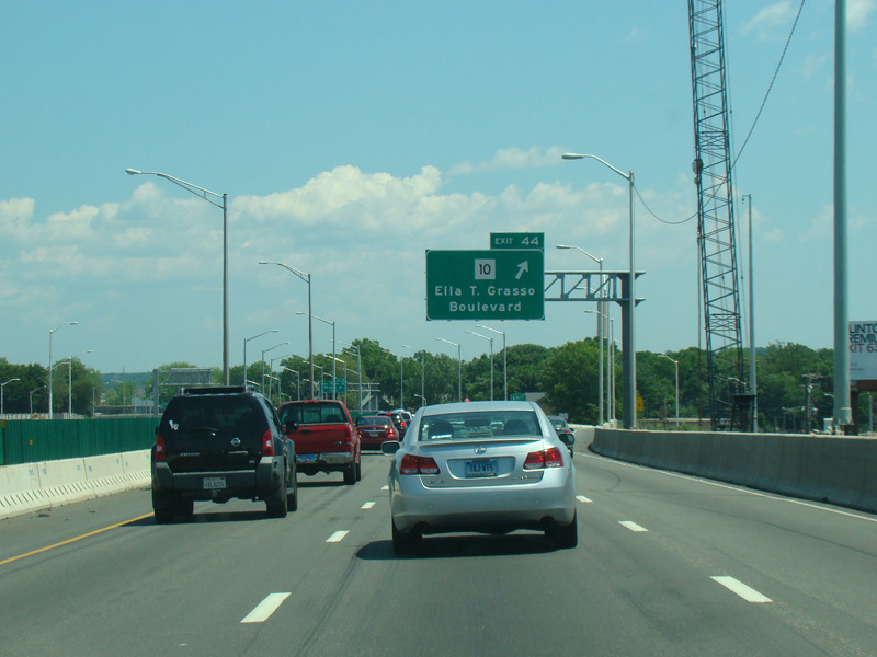 These old button-copy signs used to mark exit 44 of the Connecticut Turnpike. They have been replaced with new signs indicating that CT 10 is Ella T. Grasso Boulevard, not Kimberly Avenue.