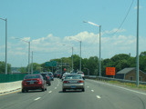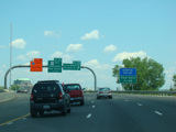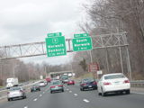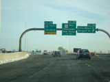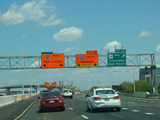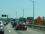 These photographs show the area between exit 51 and exit 53 when the highway was narrowed down to two lanes in each direction due to construction. The signs in these pictures have been replaced.