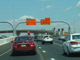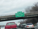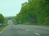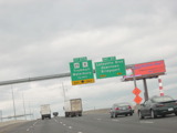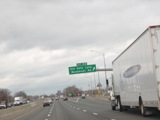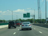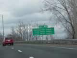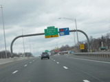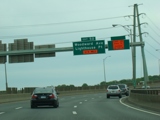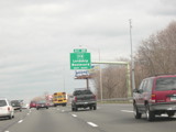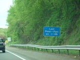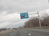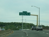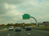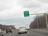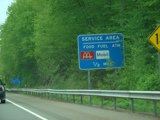 This picture shows the same sign bridge following the sign replacement. The sign has since been modified to use the terminology "service plaza" instead of "service area."