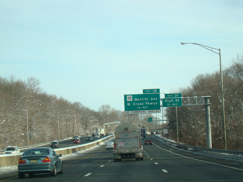 Exit 38 is for the Merritt Parkway (CT 15) and the Wilbur Cross Parkway (CT 15).
