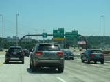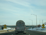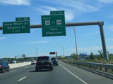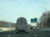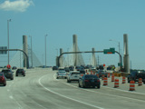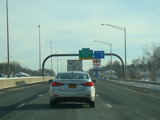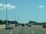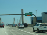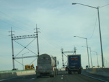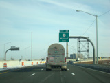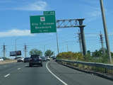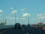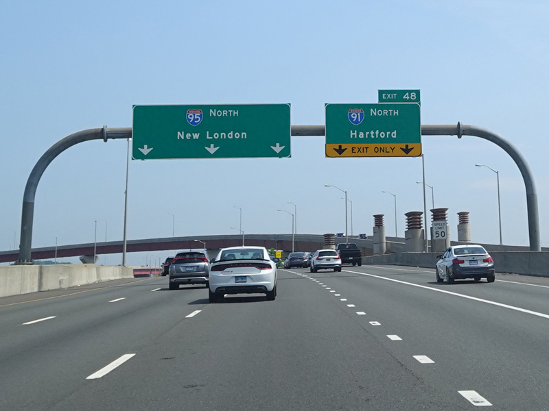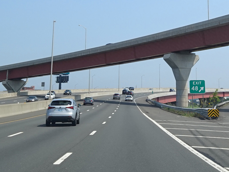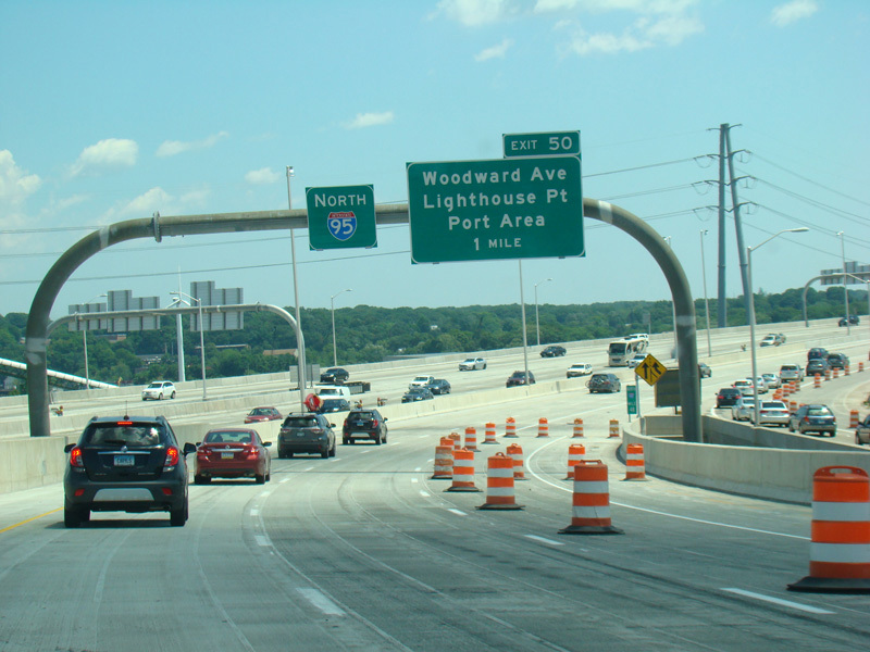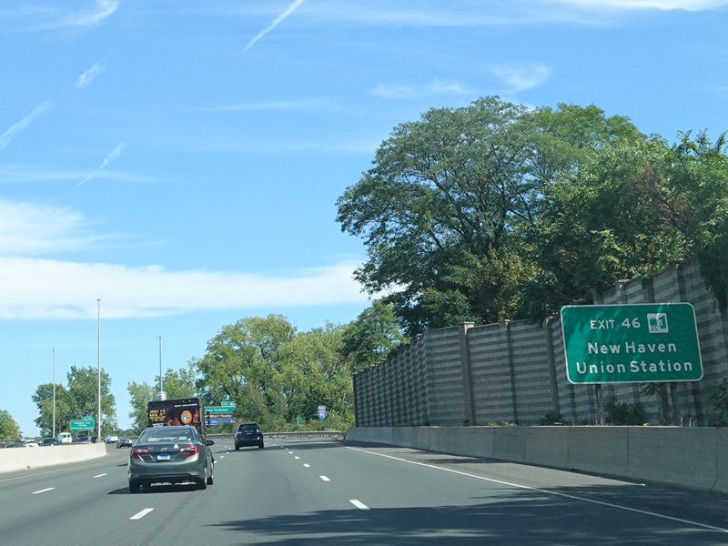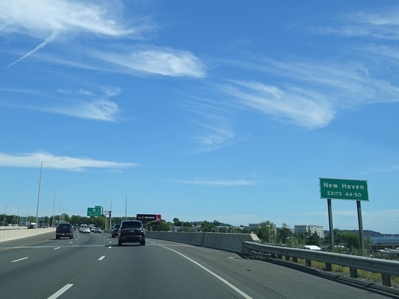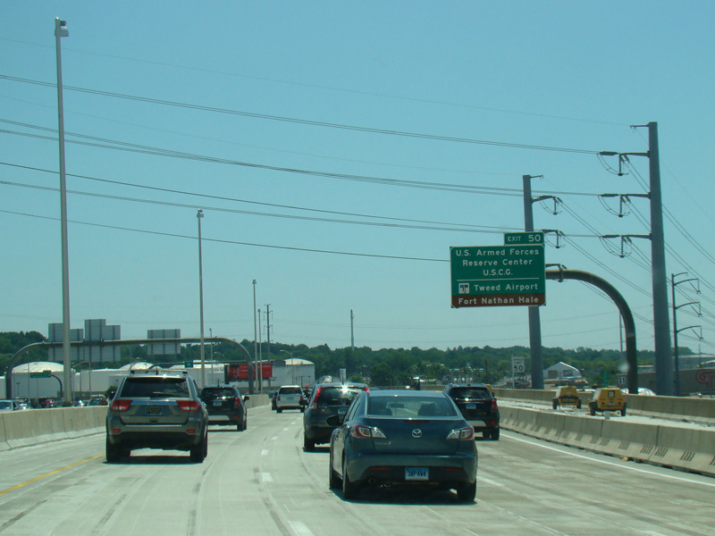 The Q Bridge carries the Connecticut Turnpike across New Haven Harbor. Exit 50 is for Woodward Avenue.