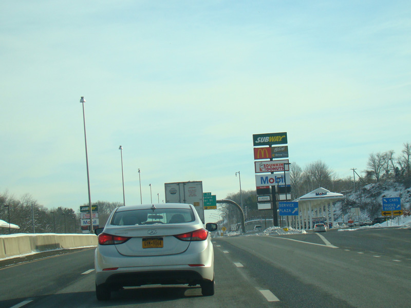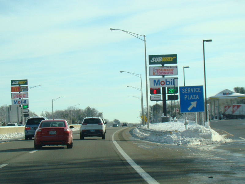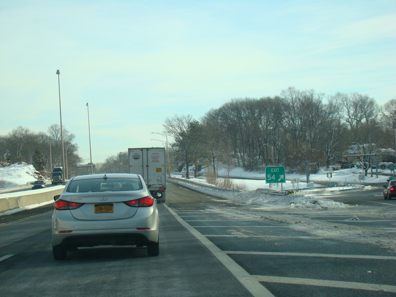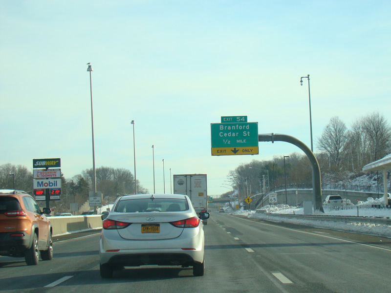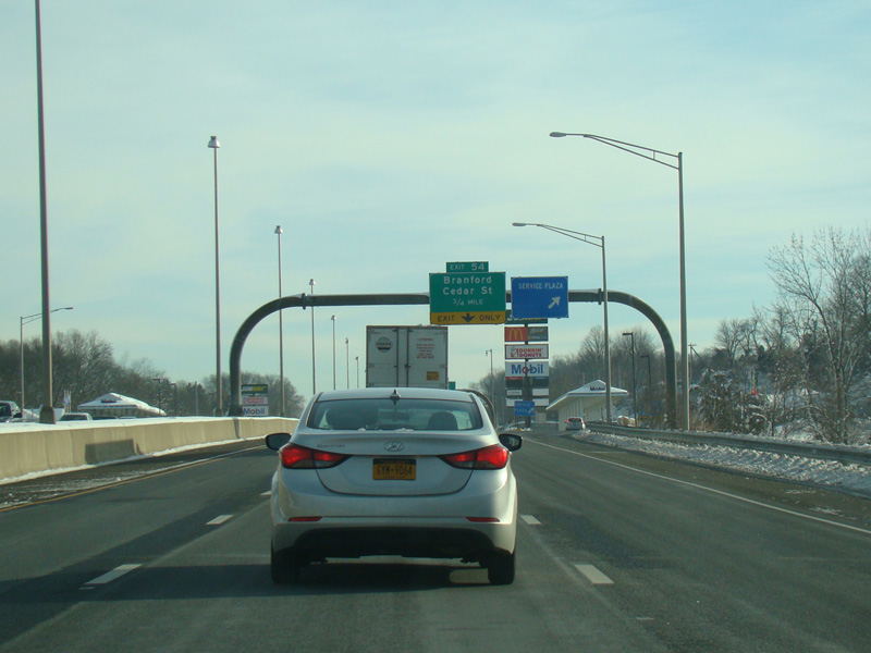 There is a service plaza between exits 53 and 54. Exit 54 is for Cedar Street.