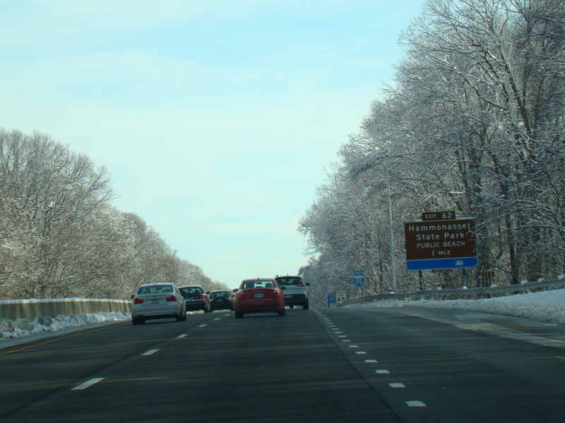 There is a service area between exits 61 and 62. Exit 62 is for Hammonasset State Park.