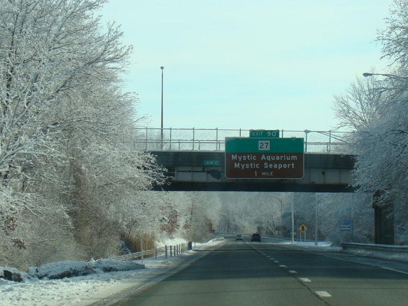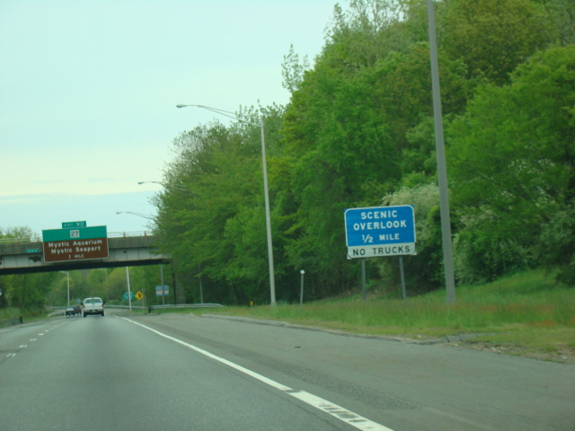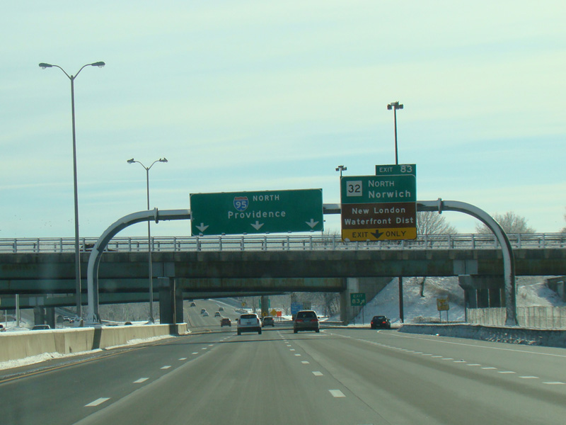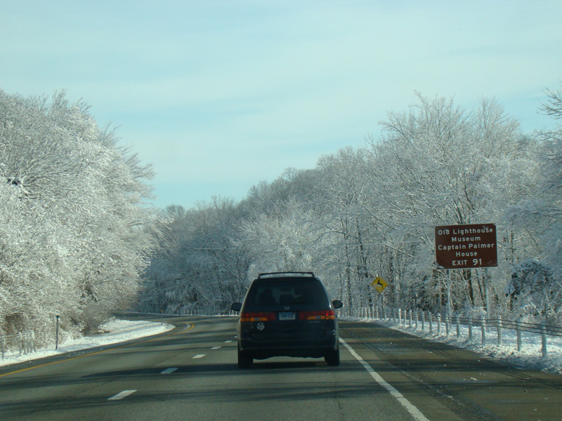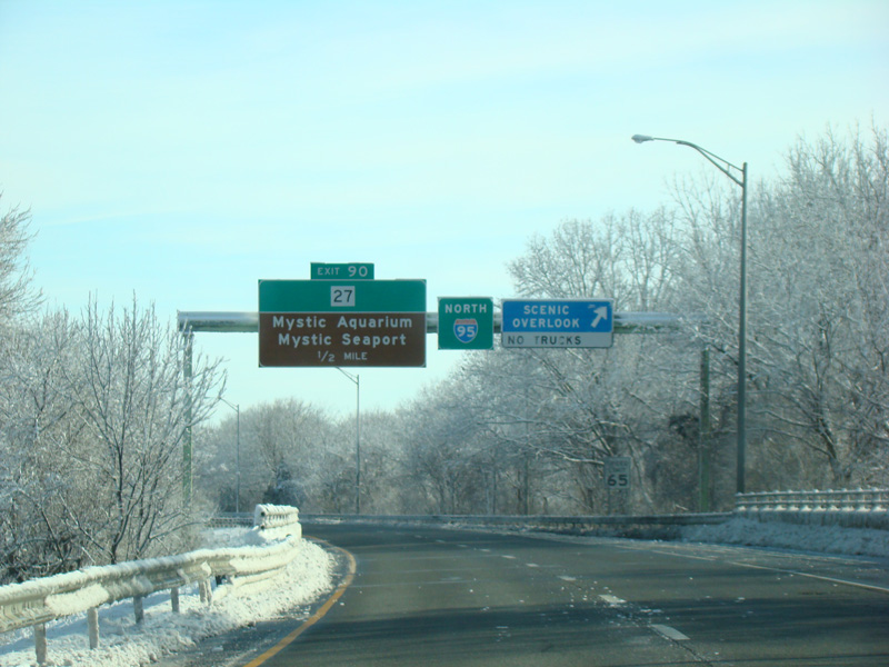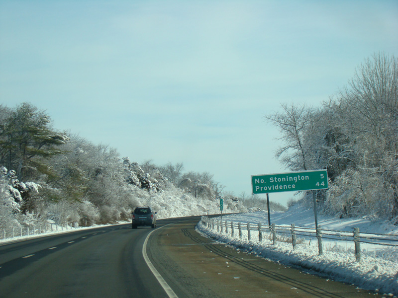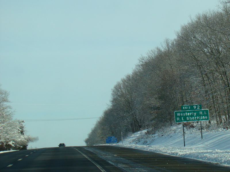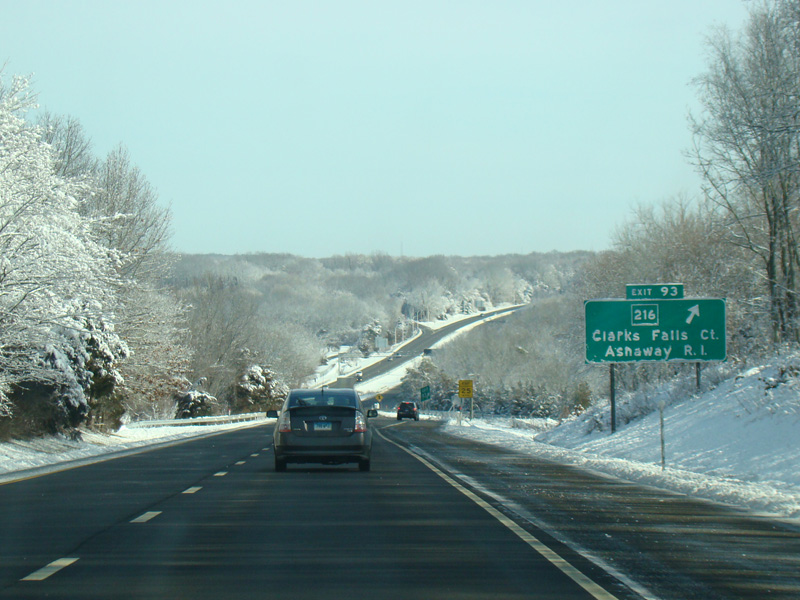 Exit 93 is for Clarks Falls Road (CT 216). It is the last exit in Connecticut. I-95 continues straight ahead into Rhode Island.
