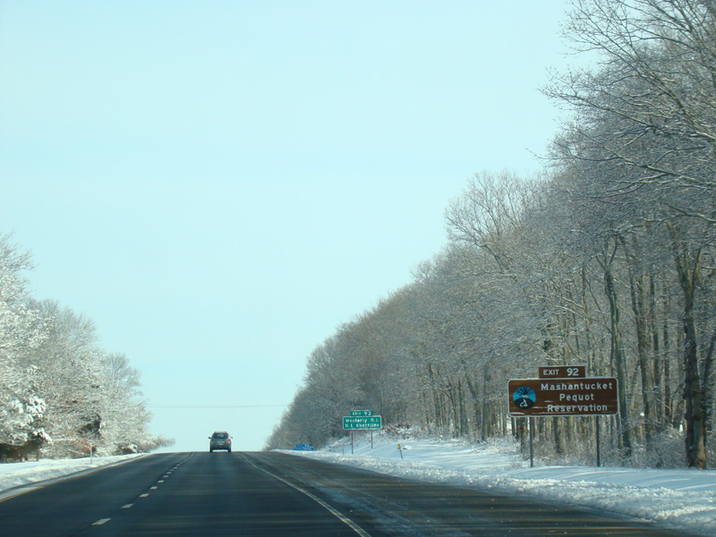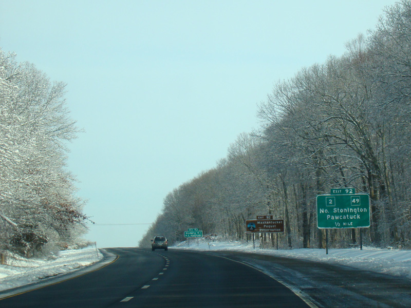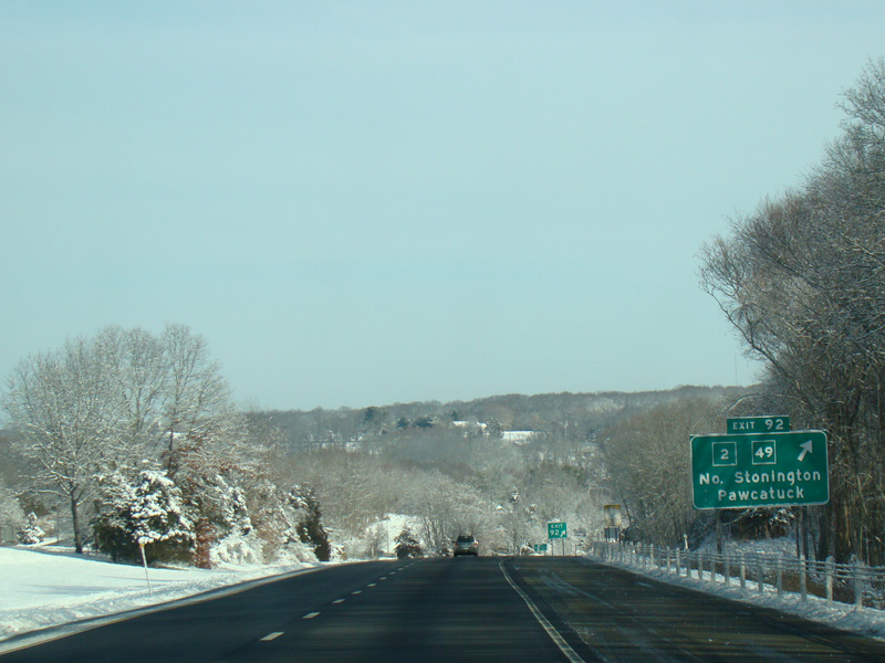 Exit 92 is for Liberty Street (CT 2) and Pendleton Hill Road (CT 49).