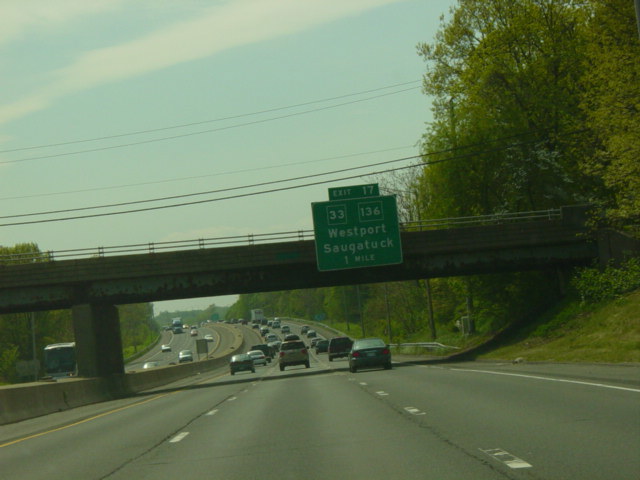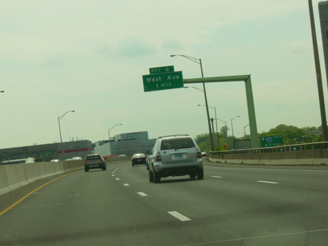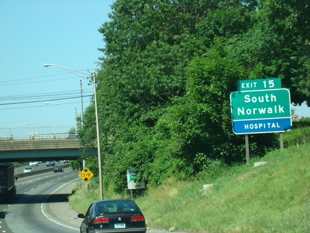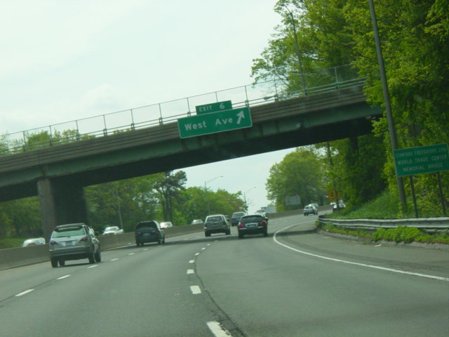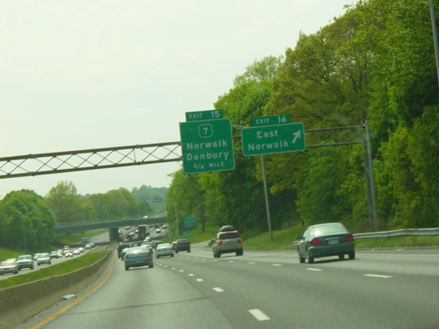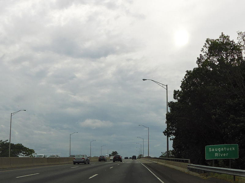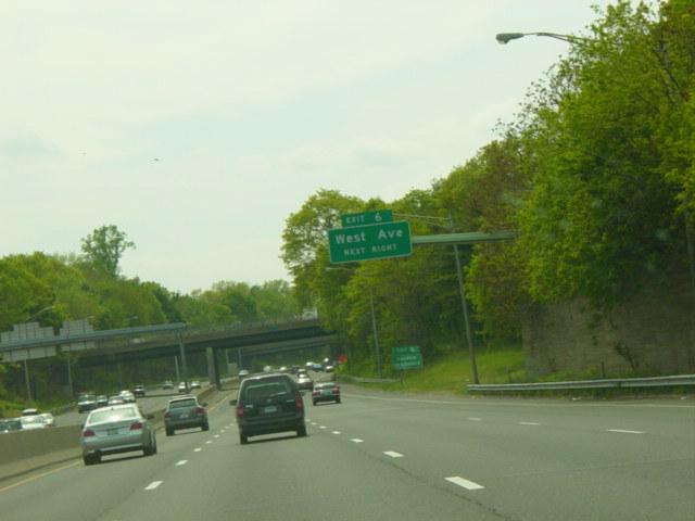 These pictures show the Connecticut Turnpike southbound at exit 15 as it appeared before construction work began to rehabilitate the bridge over the Norwalk River.
