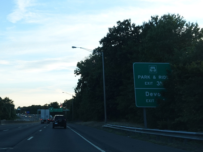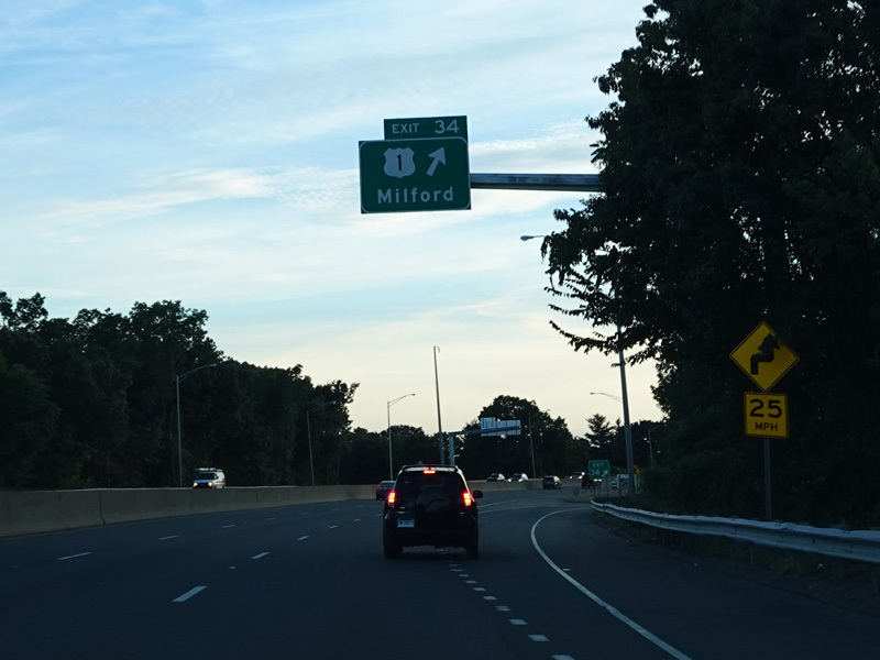 Exit 34 is for Bridgeport Avenue (US 1).
