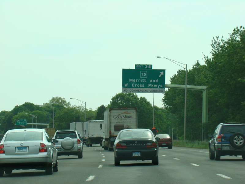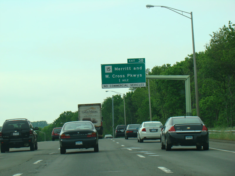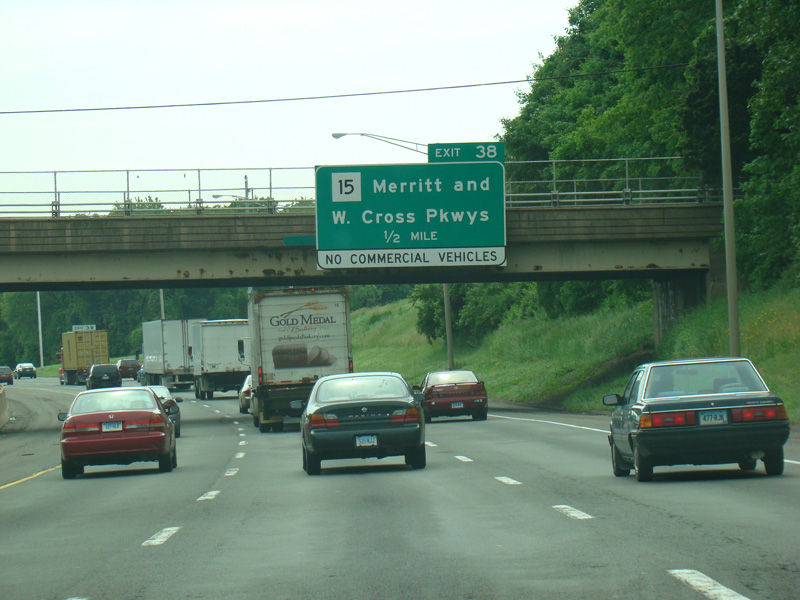 Exit 38 is for the Merritt Parkway (CT 15) and the Wilbur Cross Parkway (CT 15).