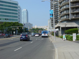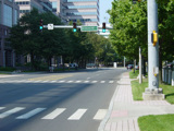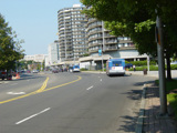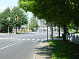 Washington Boulevard runs north through Stamford as a four-lane undivided road. There is a traffic light at Richmond Hill Avenue.