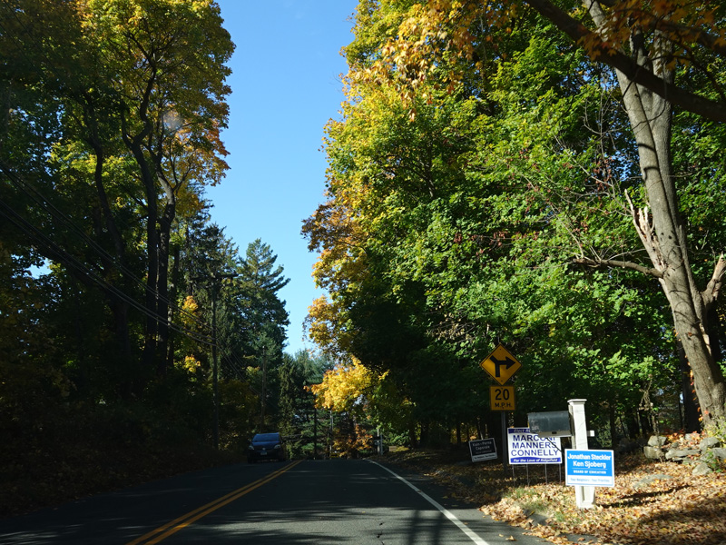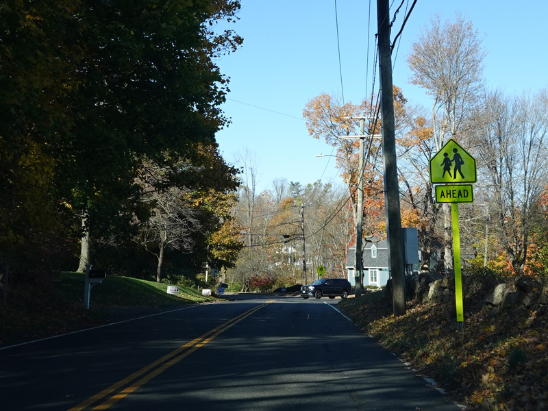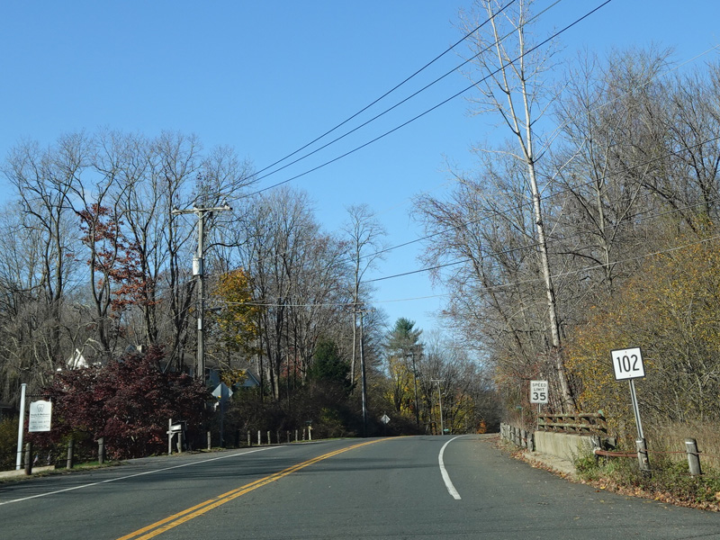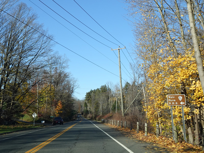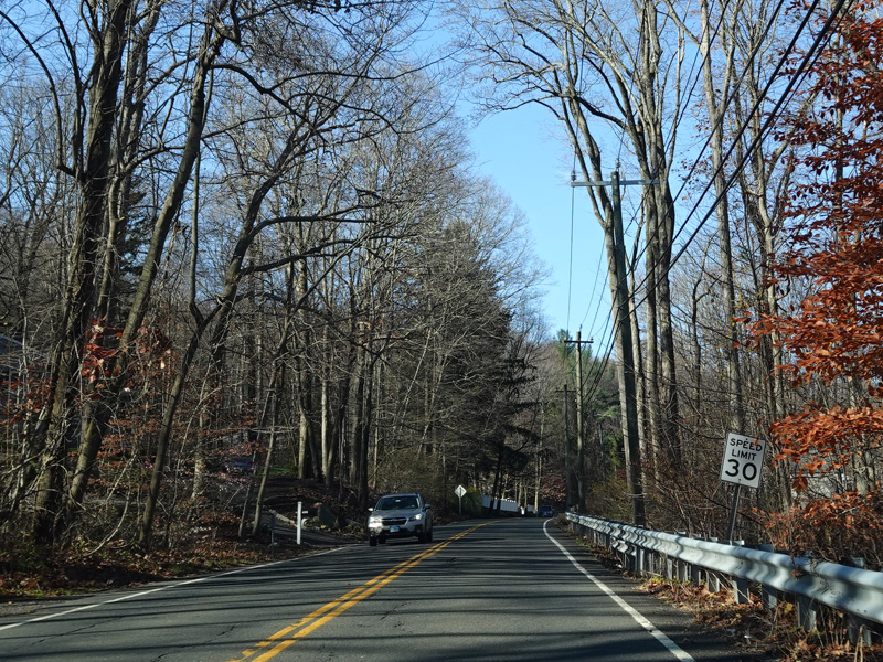 Branchville Road begins at Ethan Allen Highway (US 7) and runs west as a two-lane undivided road.