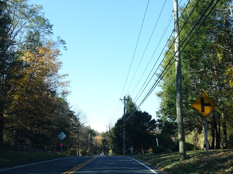 Branchville Road ends at a stop sign at Main Street (CT 35). Turn right to go north or left to go south.