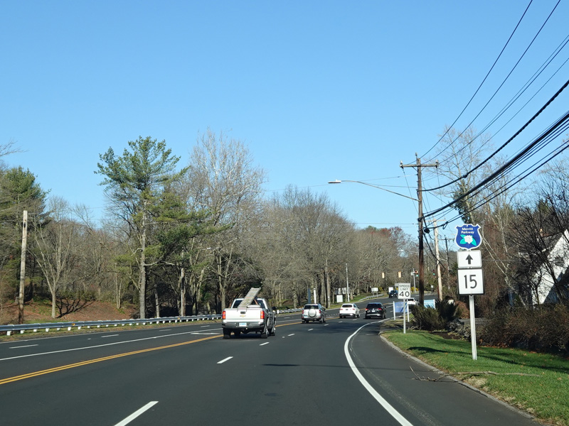 Long Ridge Road begins at Cold Spring Road (CT 137) in Stamford and runs north as a four-lane undivided road.