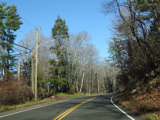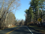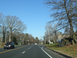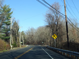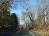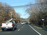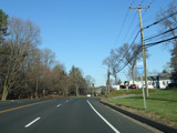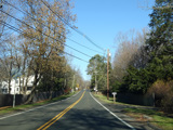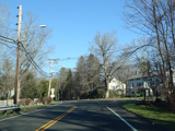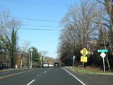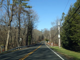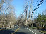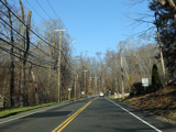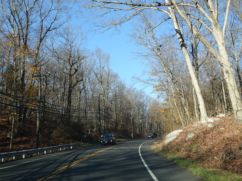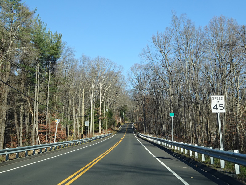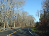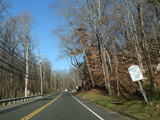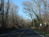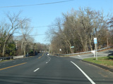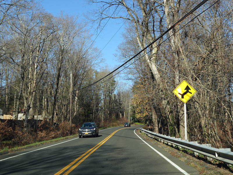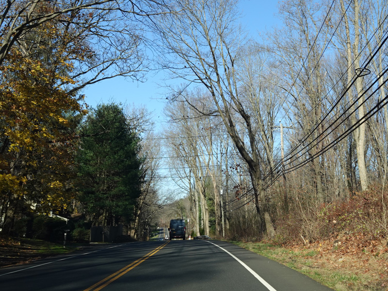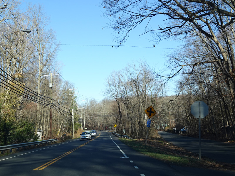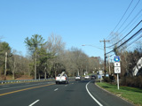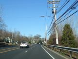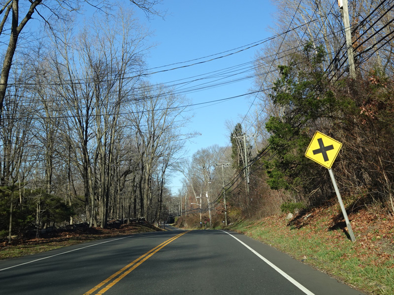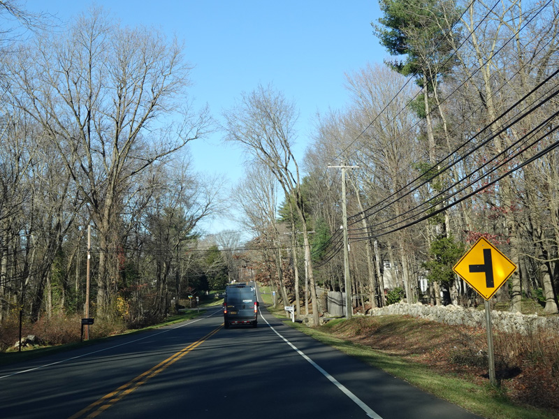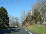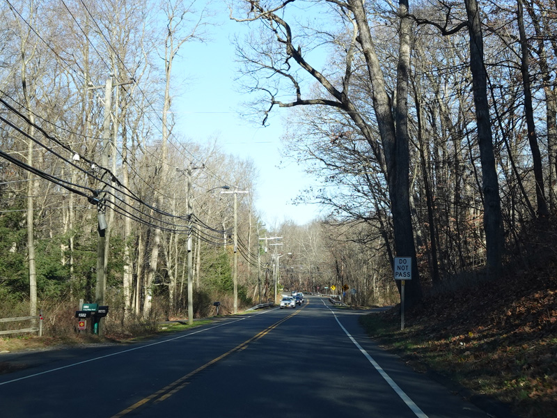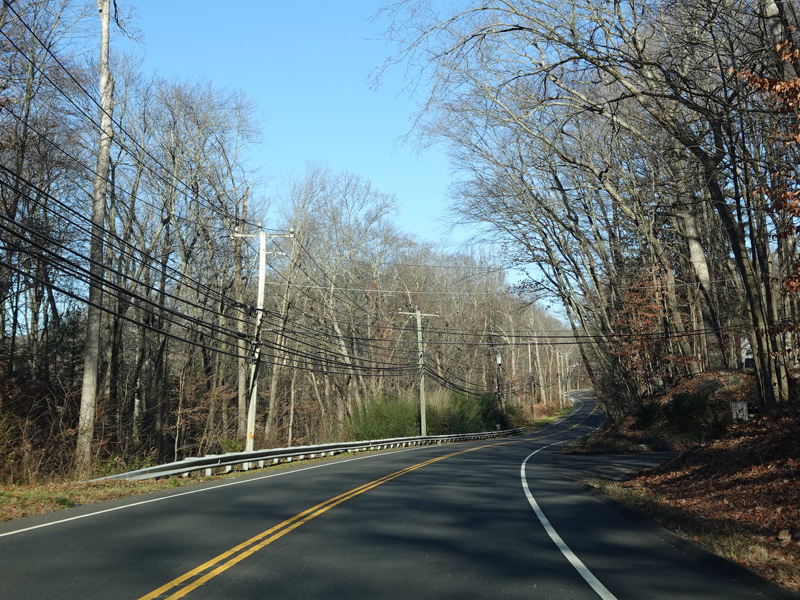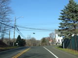 Long Ridge Road runs north toward New York as a two-lane undivided road. At the state line, it changes designation to become Westchester CR 3.