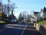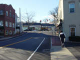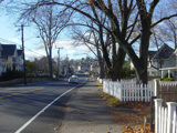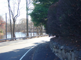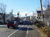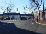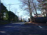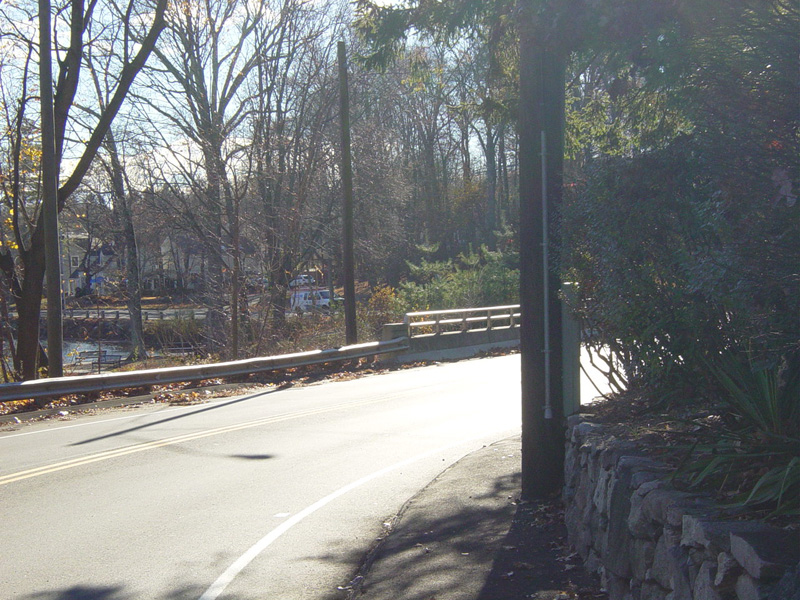 East Avenue ends here at Main Street (CT 124) in New Canaan. Turn left to go south or turn right to go north. CT 106 is multiplexed with CT 124 to the south beginning here. Signage at this intersection is completely lacking.