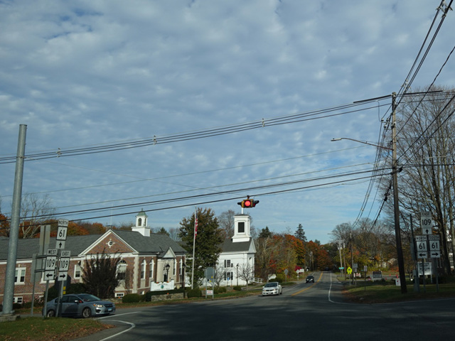 CT 109 is an east/west route in Litchfield County. It begins at Litchfield Road (US 202) in New Milford and runs east while US 202 curves to the northeast. It extends to Thomaston, where it ends at Watertown Road (US 6), just west of the CT 8 expressway.