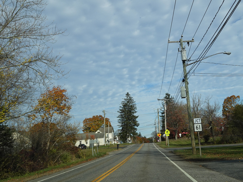 There is a stop sign and a flasher at CT 61. Turn left onto North Street to go north or right onto South Street to go south.