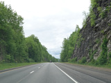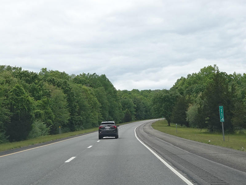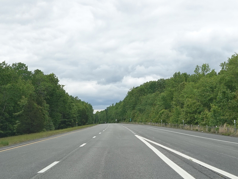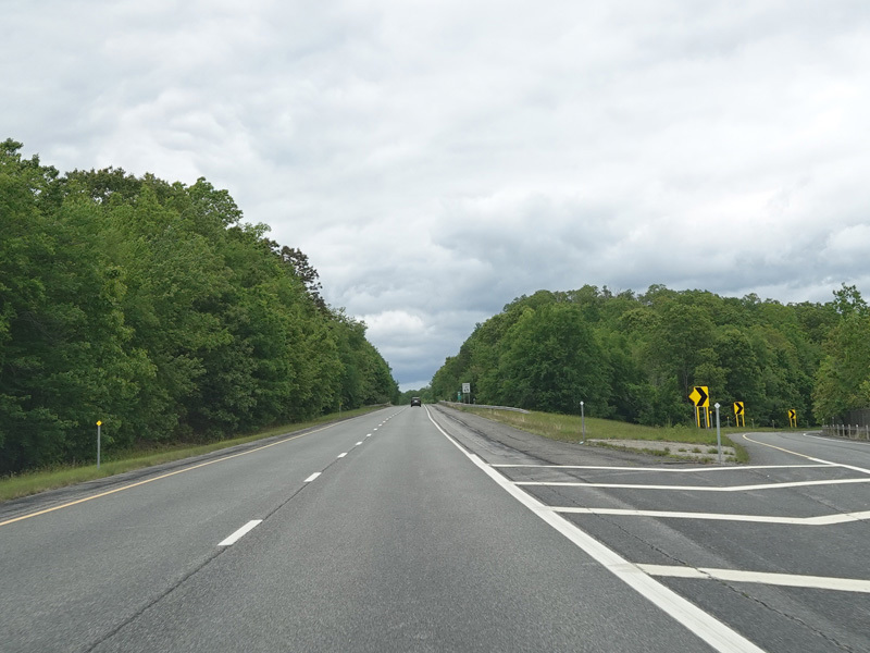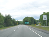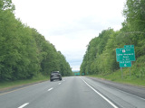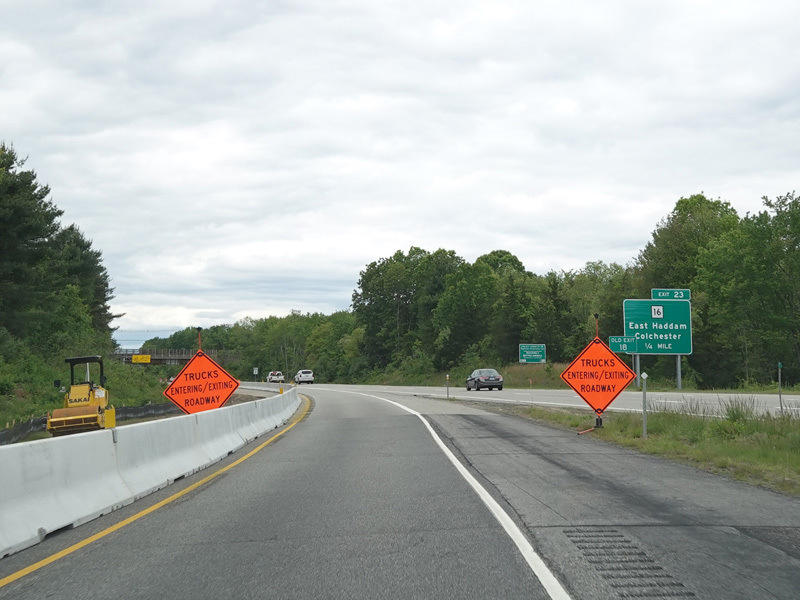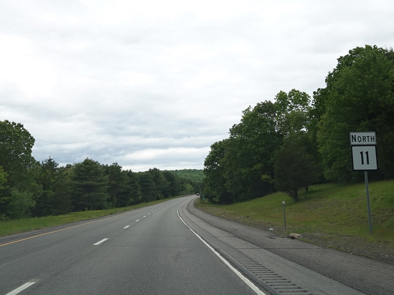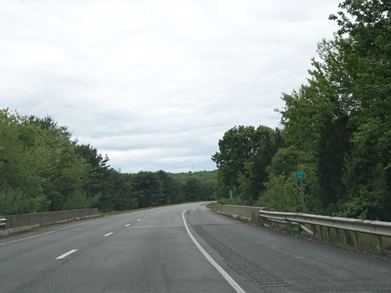 CT 11 begins at East Haddam Road (CT 82) in Salem. At first, it follows what was supposed to be an entrance ramp before widening to two lanes as it merges with the pavement from the overpasses that would have led to the unbuilt portion of the expressway.