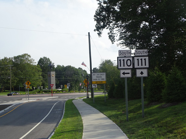CT 111 is a north/south route through Trumbull and Monroe. Main Street in Trumbull takes on the CT 111 designation at its interchange with the Merritt Parkway (CT 15). It runs north through Trumbull to the northern end of the expressway section of CT 25. There, Main Street turns northwest onto CT 25, while CT 111 continues north as Monroe Turnpike. In Monroe, there is a traffic circle at the northern terminus of Shelton Road (CT 110). Monroe Turnpike continues north to end at Roosevelt Drive (CT 34) near the Housatonic River.