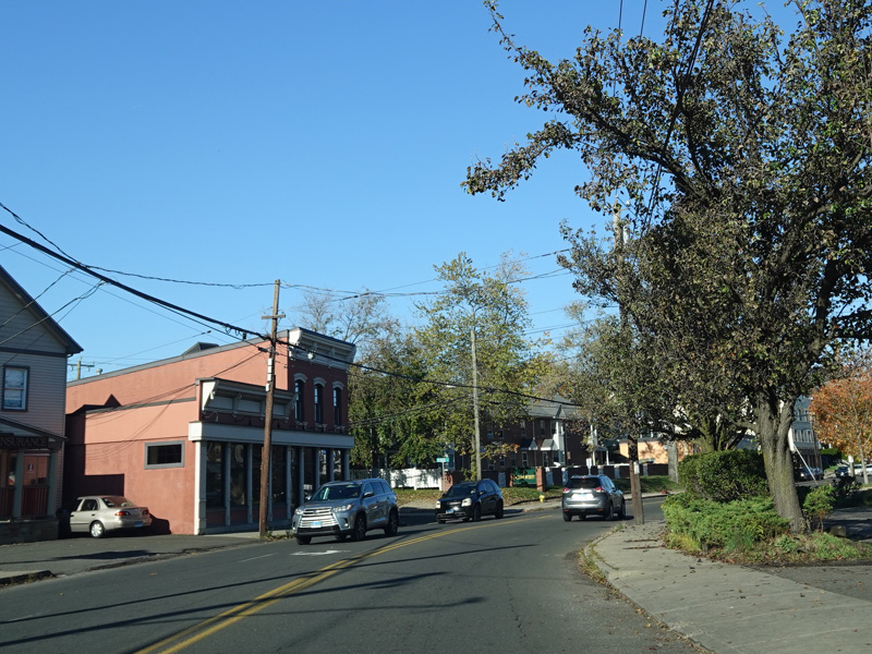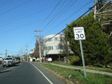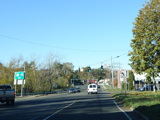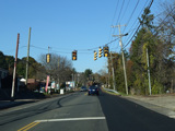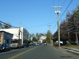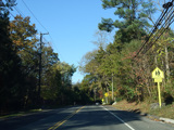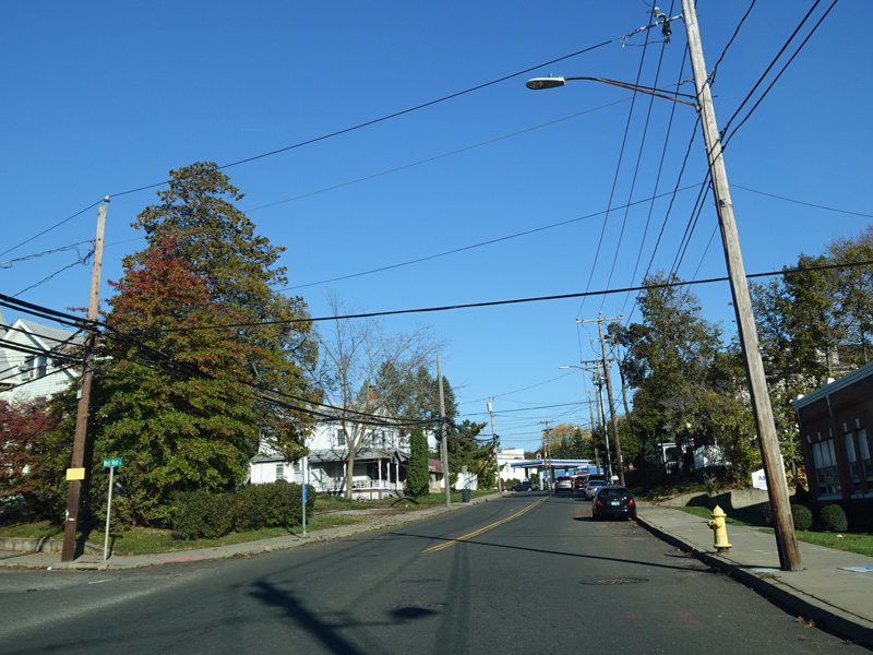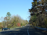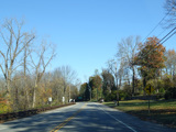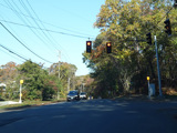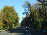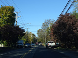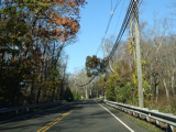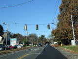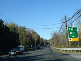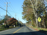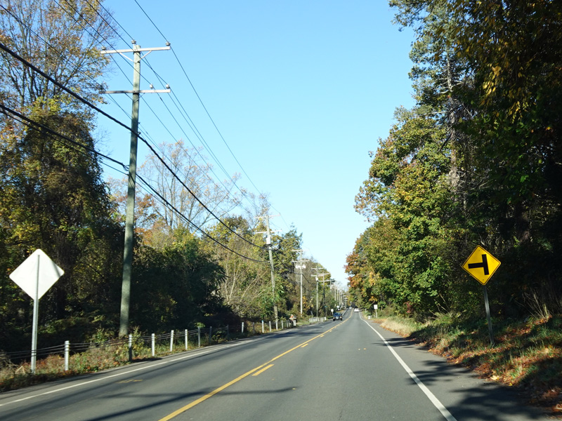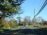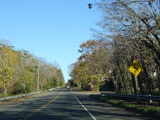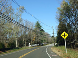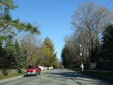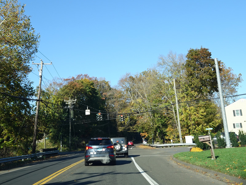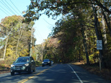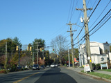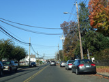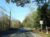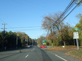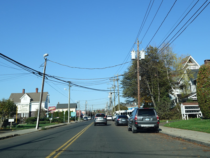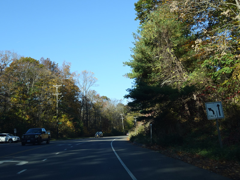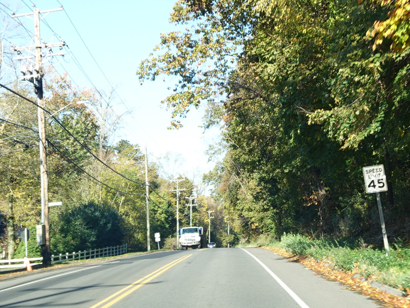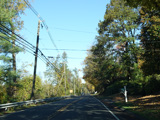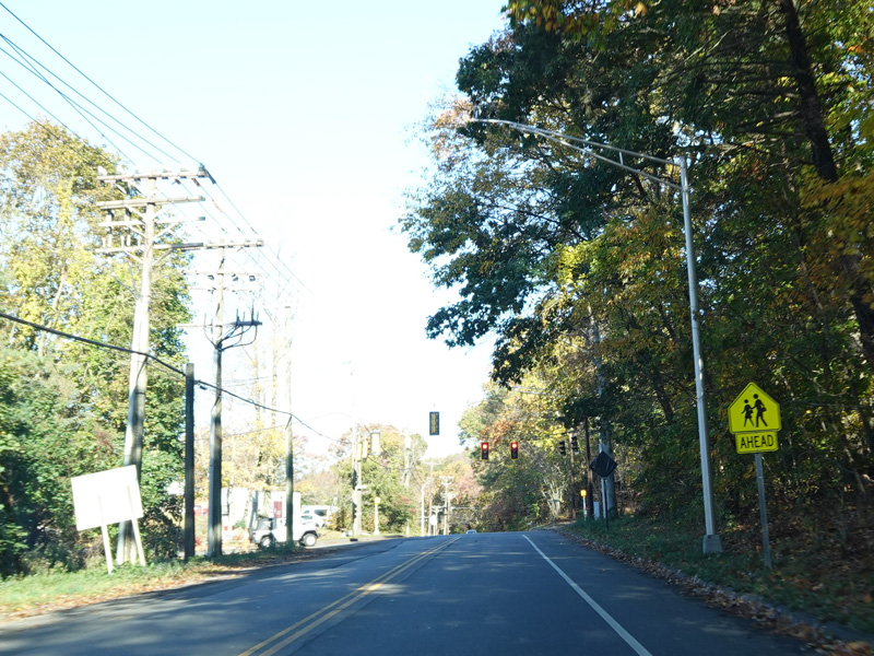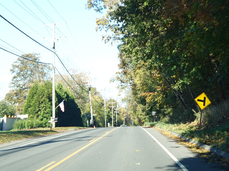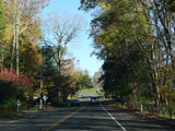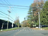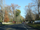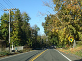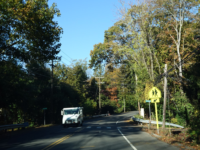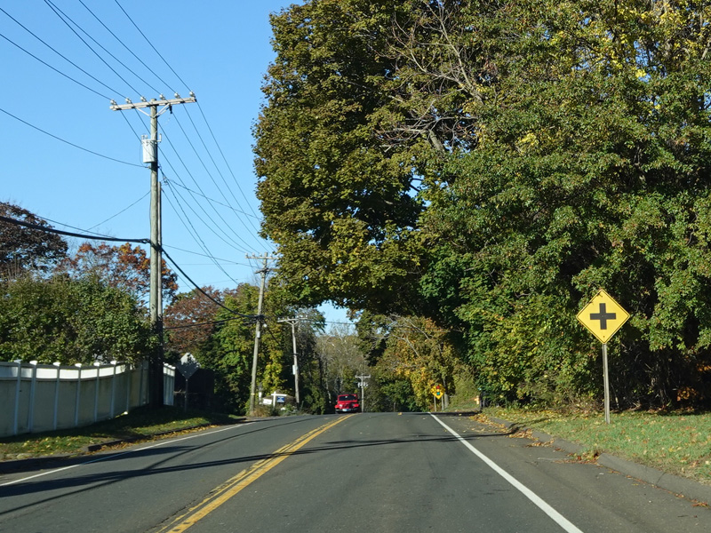 New Canaan Avenue runs northwest as a two-lane undivided road. Heading out of town, the surroundings become more wooded.