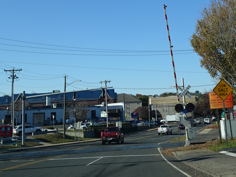 There is a railroad crossing at the Danbury Branch of the Metro-North Railroad.