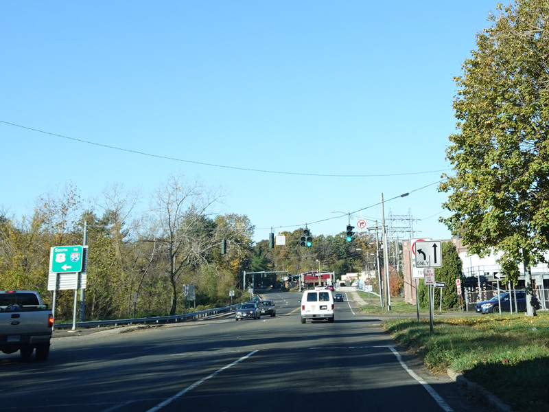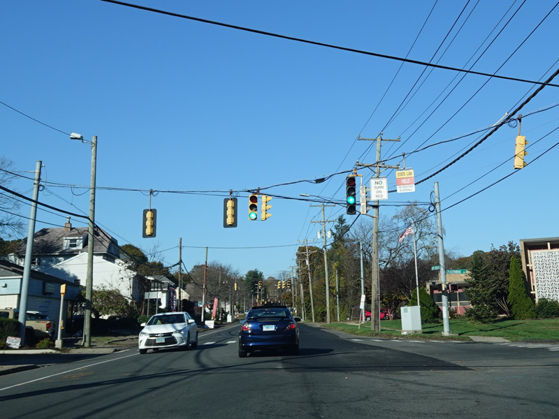 Main Street begins at North Avenue (US 1) and Cross Street (US 1) in Norwalk and runs northwest as a two-lane undivided road.