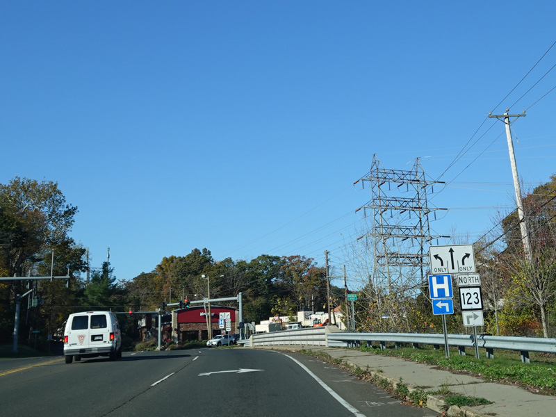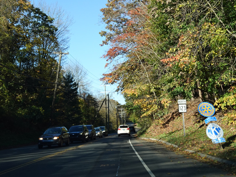 Smith Ridge Road runs north to the state line. It continues into New York as NY 123.