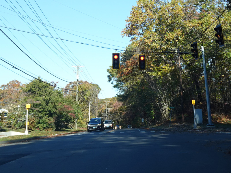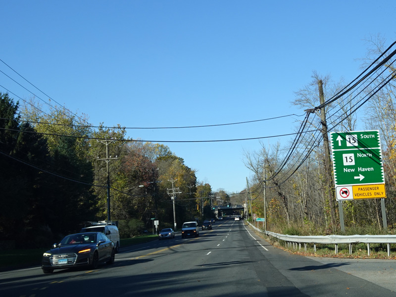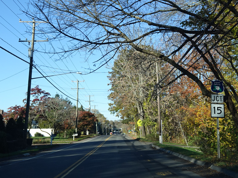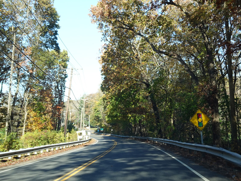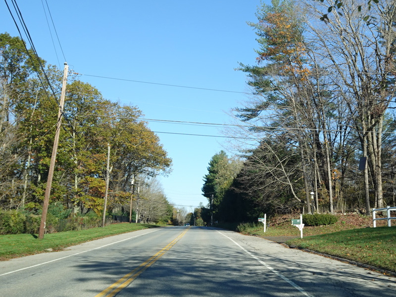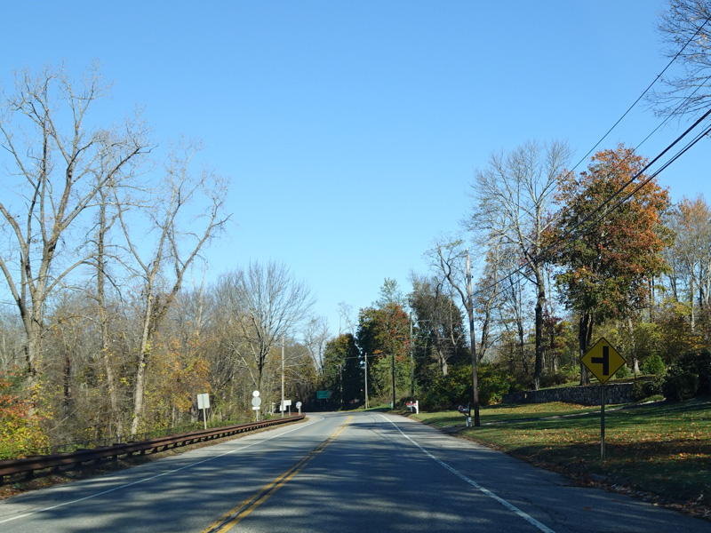 New Norwalk Road continues north through New Canaan. After a short distance, it changes names to become Smith Ridge Road.