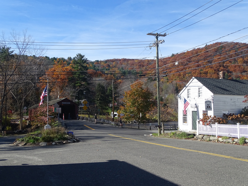 The West Cornwall Covered Bridge carries Sharon-Goshen Turnpike across the Housatonic River.