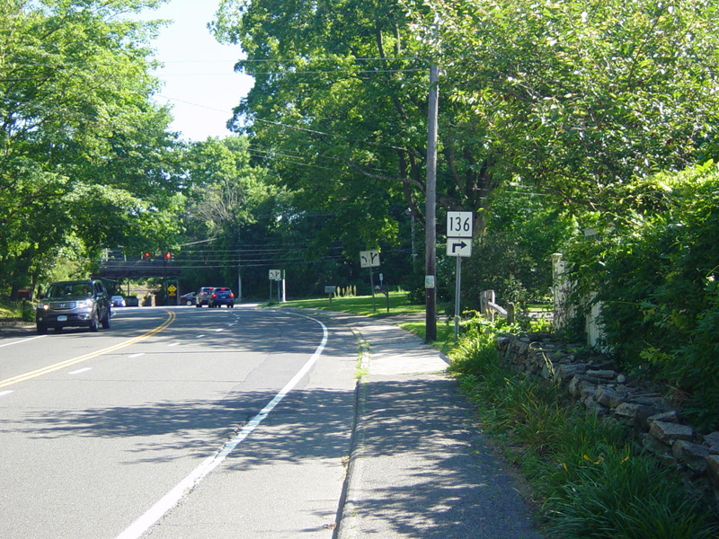 Park Street ends after one block at Saugatuck Avenue. Turn left to stay on CT 136. CT 33 begins to the right.