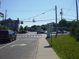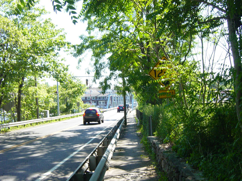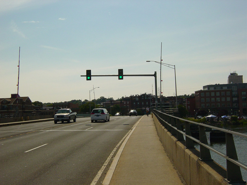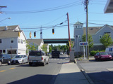 At the end of the bridge, there is a traffic light. Turn left onto Water Street to stay on CT 136. Route signage is missing, once again. North Water Street is to the right. Washington Street continue straight ahead as a local street.