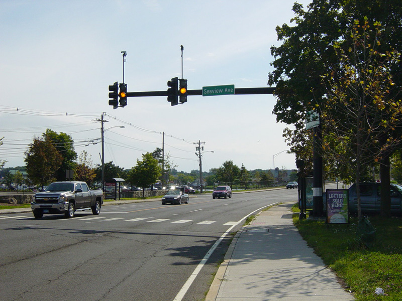 There is a traffic light at Seaview Avenue. Fort Point Street changes names here to become Washington Street.