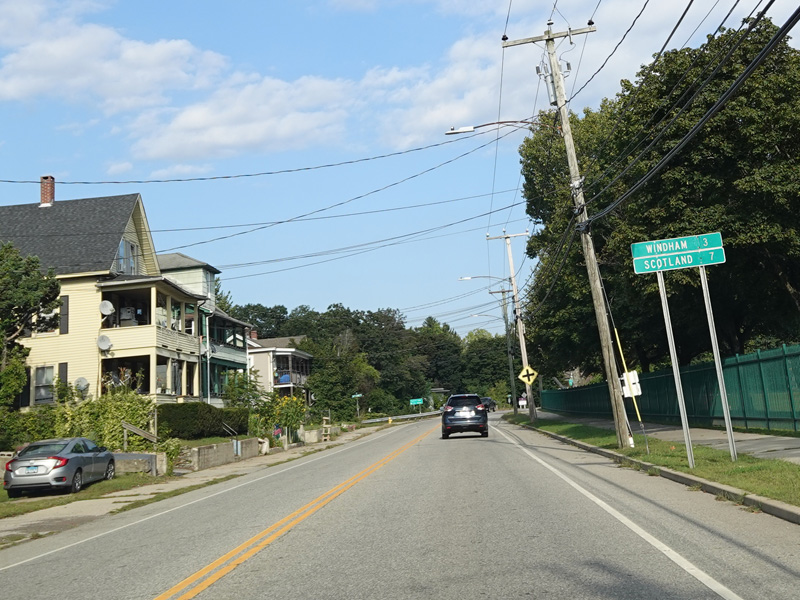 The two routes split at a stop sign. Turn left onto Scotland Road to stay on CT 14. Continue straight ahead onto Windham Center Road for CT 203.