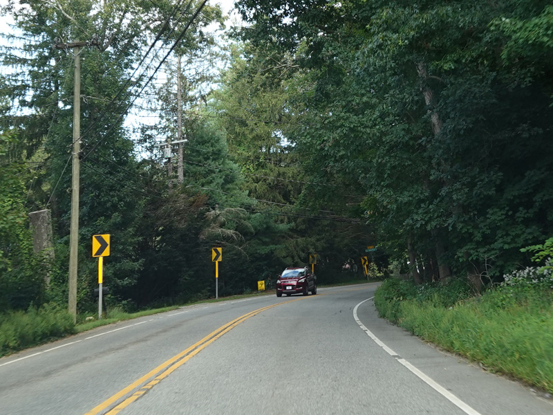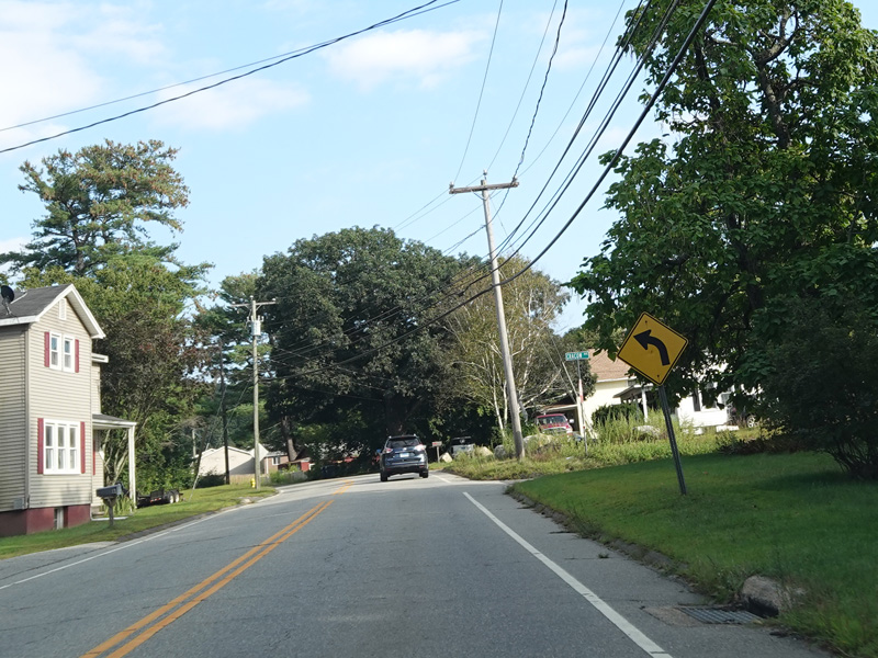 There is a small bridge over the Natchaug River. Main Street changes names to become Brick Top Road.