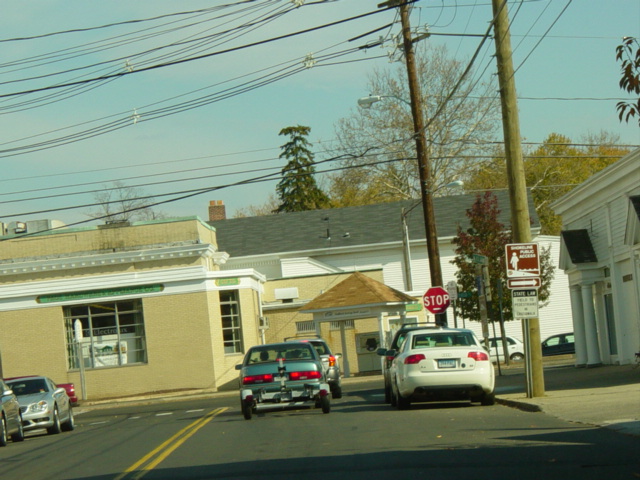 Leetes Island Road ends at this stop sign. Bear left onto Water Street to stay on CT 146.