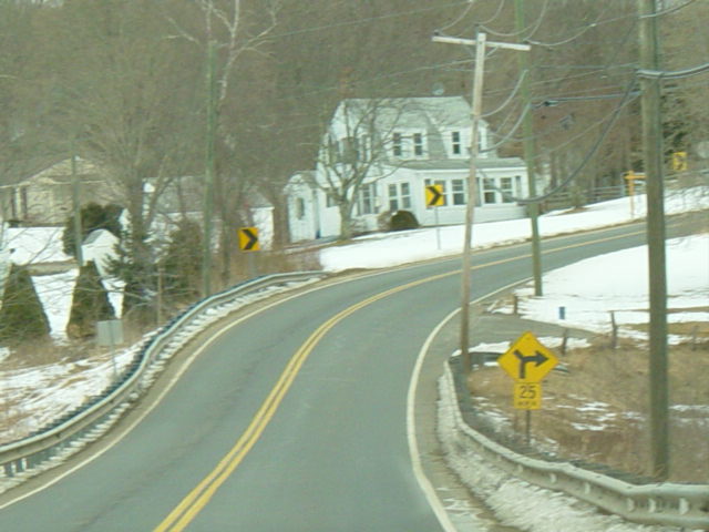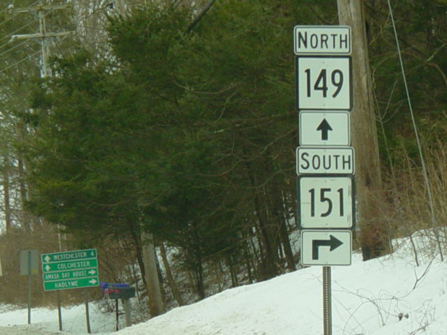 After a distance the two routes split. Turn right onto Town Street to go south on CT 151. Continue straight ahead onto Falls Road to stay on CT 149.